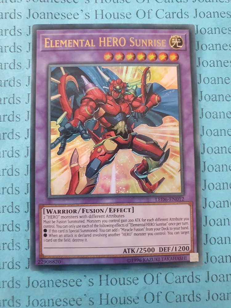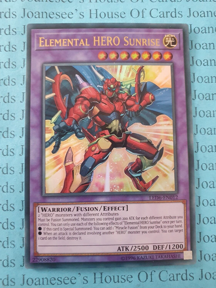 This is the Ultra Rare Foil Light Warrior Fusion Elemental HERO Sunrise LED6-EN012 Unlimited Edition English (EU) Mint/NMint Condition Totally Original Konami (or your money back!) I will deliver in safe packaging to keep it in perfect condition. Ideal for players and collectors alike. Check out my other items! I will combine postage costs for multiple purchases. Sign up for my email newsletters by adding my eBay Shop to your favourites