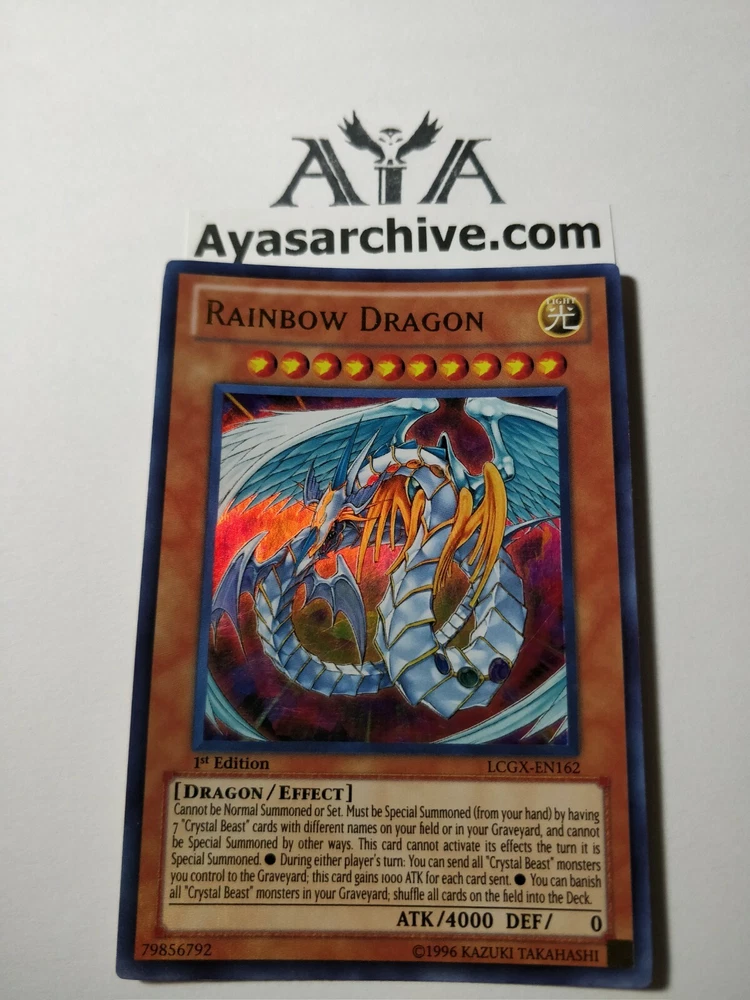 ALL CARDS ARE 1ST ED NM, UNLESS OTHERWISE STATED. UN/UNL = UNLIMITED (C) = COMMON (R) = RARE (SR) = SUPER RARE (UR) = ULTRA RARE (SEC) = SECRET RARE 1ST = 1ST ED We would like to inform you that we are rebranding from AndyTCG to AYA. Follow us for updates, notices, and special deals. To do this please click Save on our storefront. Feedback is given, once Feedback is left. ;) For flash deals, follow our store, and subscribe to our email list. New cards every week. Shipping We treat our cards and shipping process with the utmost importance, every delivery is recorded in our database. Every transaction is monitored. For future reference, if any disputes were to arise, documentation will be provided. These cards are : Shipped within 1 Business day. 100% authentic, tournament legal cards! Near Mint Condition, unless specified. Shipped sleeved and in a toploader! Condition Guide Near Mint/Mint ( NM/M ): No apparent imperfections; possible light scratches on surface. Has crisp corners, and unblemished edges. Light Play (LP): Light edgewear or corner wear and/or multiple small bends/creases/dents. Moderate Play (MP): Very visible condition issues visible at a casual glance; border wear, corner wear, scratching or scuffing, creases or whitening, minor dirt buildup, water damage, etc. Heavy Play ( HP ): Major/multiple bends, creases, and/or dents throughout card, heavy border wear, tearing. Damaged (DMG) : The card is damaged, please refer to the picture in the listing for the location of the damage. Please message or email us if you have any questions!