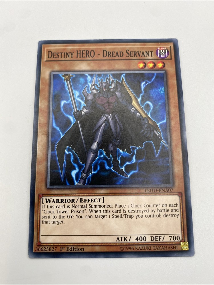 LEHD-ENA07 Destiny HERO - Dread Servant 1st Edition YuGiOh Card. Condition is Ungraded. Dispatched with Royal Mail 2nd Class.