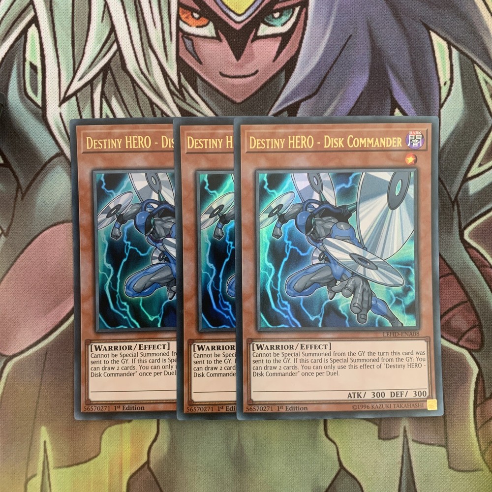 This playset is mixed edition (you will receive a mixture of unlimited and 1st edition cards) Listing Template 2018 Home About Us Shipping Returns View Feedback Contact Us LEHD-ENA08 x3 Destiny HERO - Disc Commander Ultra Excellent Condition Yugioh These are cards in excellent condition as per the photos. You will receive a playset of cards. (x3) Thanks for viewing! Thanks for viewing! Please check out our eBay store for more cards and don’t forget to use our promotional offers to save money on multiple items! We offer COMBINED INTERNATIONAL SHIPPING! Please contact us and ask us to combine multiple cards in your shipment to save on postage costs! International tracking is included on all orders over £40. If you require a tracking code under this amount it is an additional charge of £6.50. Please add this to your order or contact us for more information. We provide postage free in the UK! All of our single cards are sleeved, with a taped Toploader to ensure maximum protection, and the best overall condition of your cards! Combined orders may in the same sleeve, unless requested otherwise. Do you want to earn extra cash for your old cards? Clear out your binder and send us photos of what you have! We will happily send you an offer and sort out postage to make it hassle free. There's no harm in trying! Message us now! Free UK Delivery! Honest Sellers. We take care of the cards so you can worry less about the fuss and more about winning, competing and collecting. About Us We started selling collectable cards over 6 years ago after selling off our own childhood Yu-Gi-Oh collection. We then rediscovered our passion for trading card games. Ever since, my brother and I have been trying to ensure that we provide a range of cards within the fastest possible time to ensure you can build your collection as you’d like it! With over 35,000 positive feedback we strive for quality customer service, aiming to give the service that we would like to receive and stock a huge inventory of new and vintage collectable cards from popular games such as Yu-Gi-Oh and Pokemon so there’s something for everyone! Our goal is that we hope to build a collectable card community as passionate about collectable cards as we are! Contact Us The best way to get in contact is through eBay’s ‘contact seller’ button where we’ll try to get back to you as soon as possible. Feedback We always prioritise your buying experience so you can shop without worry. Contact us if there’s any part of an order you were dissatisfied with as we hope to resolve any issues as soon as possible. Buy with confidence. View Our Categories