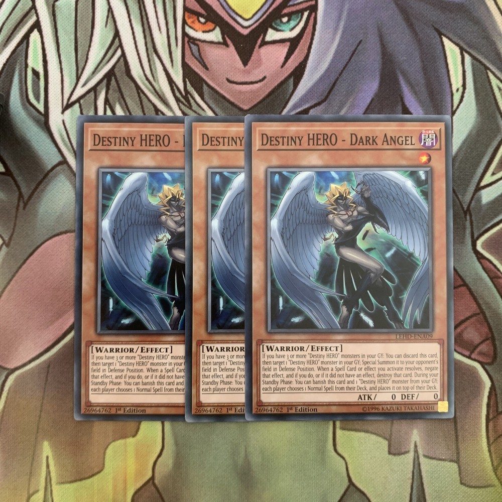 Listing Template 2018 Home About Us Shipping Returns View Feedback Contact Us LEHD-ENA09 x3 Destiny HERO - Dark Angel Common Excellent Condition Yugioh These are cards in excellent condition as per the photos. You will receive a playset of cards. (x3) Thanks for viewing! Thanks for viewing! Please check out our eBay store for more cards and don’t forget to use our promotional offers to save money on multiple items! We offer COMBINED INTERNATIONAL SHIPPING! Please contact us and ask us to combine multiple cards in your shipment to save on postage costs! International tracking is included on all orders over £40. If you require a tracking code under this amount it is an additional charge of £6.50. Please add this to your order or contact us for more information. We provide postage free in the UK! All of our single cards are sleeved, with a taped Toploader to ensure maximum protection, and the best overall condition of your cards! Combined orders may in the same sleeve, unless requested otherwise. Do you want to earn extra cash for your old cards? Clear out your binder and send us photos of what you have! We will happily send you an offer and sort out postage to make it hassle free. There's no harm in trying! Message us now! Free UK Delivery! Honest Sellers. We take care of the cards so you can worry less about the fuss and more about winning, competing and collecting. About Us We started selling collectable cards over 6 years ago after selling off our own childhood Yu-Gi-Oh collection. We then rediscovered our passion for trading card games. Ever since, my brother and I have been trying to ensure that we provide a range of cards within the fastest possible time to ensure you can build your collection as you’d like it! With over 35,000 positive feedback we strive for quality customer service, aiming to give the service that we would like to receive and stock a huge inventory of new and vintage collectable cards from popular games such as Yu-Gi-Oh and Pokemon so there’s something for everyone! Our goal is that we hope to build a collectable card community as passionate about collectable cards as we are! Contact Us The best way to get in contact is through eBay’s ‘contact seller’ button where we’ll try to get back to you as soon as possible. Feedback We always prioritise your buying experience so you can shop without worry. Contact us if there’s any part of an order you were dissatisfied with as we hope to resolve any issues as soon as possible. Buy with confidence. View Our Categories
