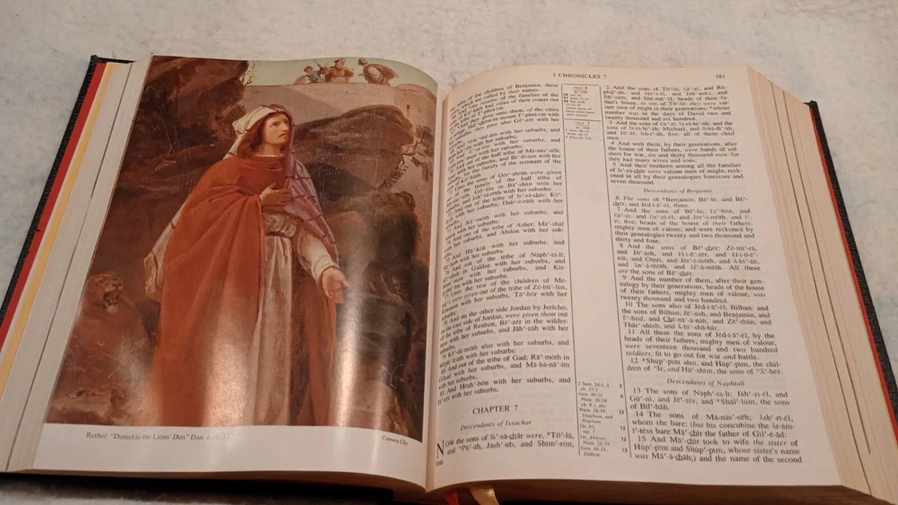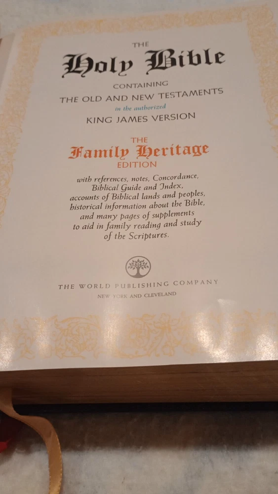 Large Holy Bible King James Version Family Heritage Edition World Publishing. In great condition, like new, no writing in the Bible, no damage, see photos for condition. This is a large size book, 11.5in. tall, 9.5in. wide and 3in. thick. Weighs 7lbs. 15oz.