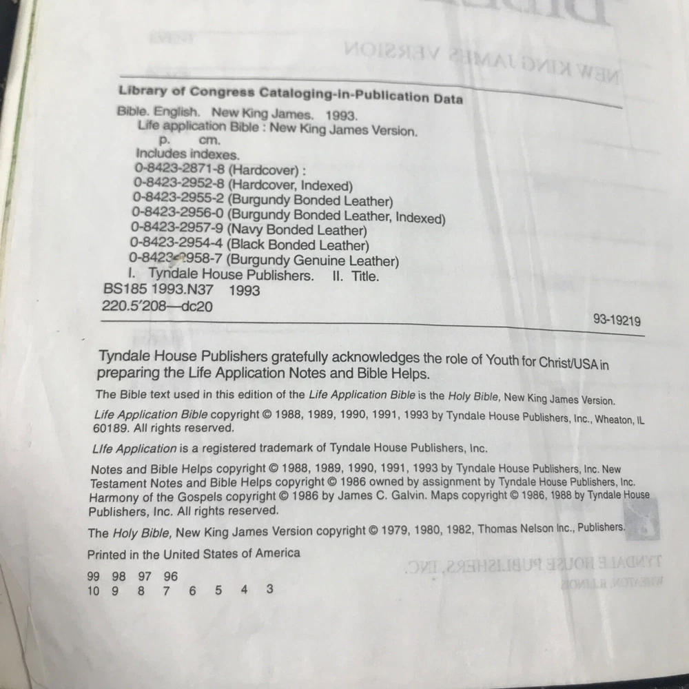 Life Application Bible New King James Version Bonded Leather Tyndale 1993 Please see all photos for actual condition and reach out with any questions