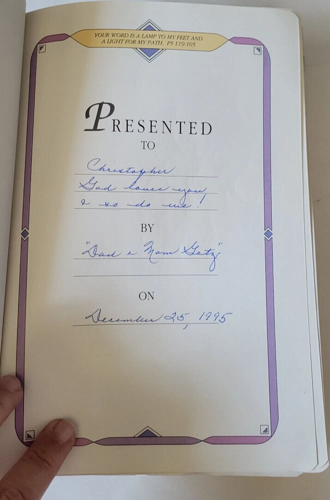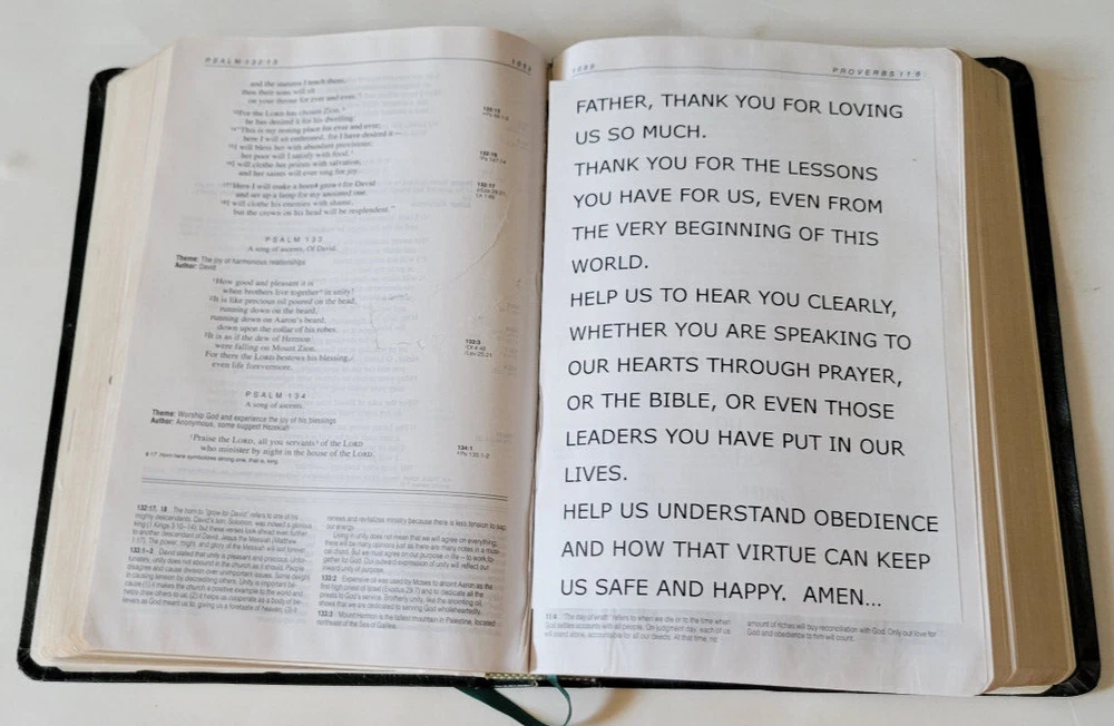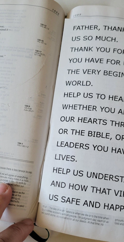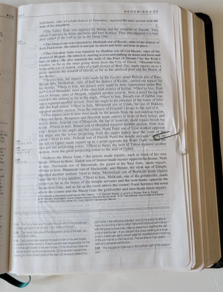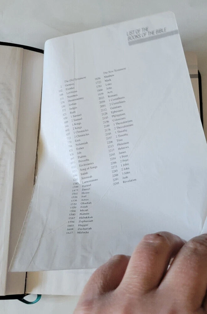 Life Application Study Bible Green Genuine Leather Zondervan Maps Index DAMAGED Cover is bonded leather Book is missing pages, also there is a a few pages in which there is typed paper glued to the book pages Cover has shelf wear