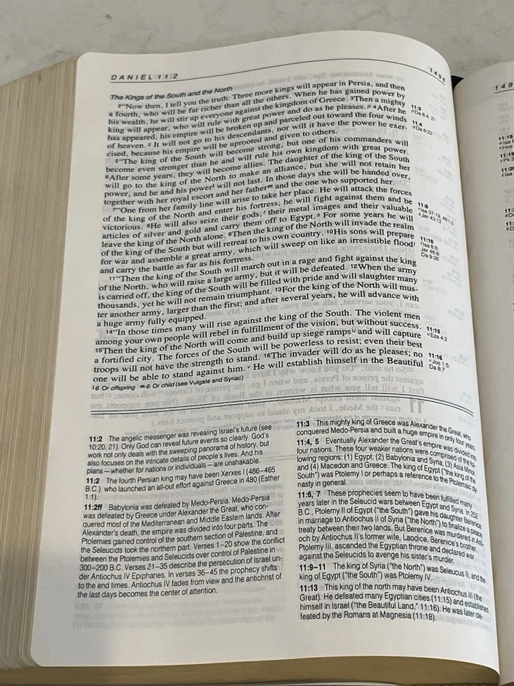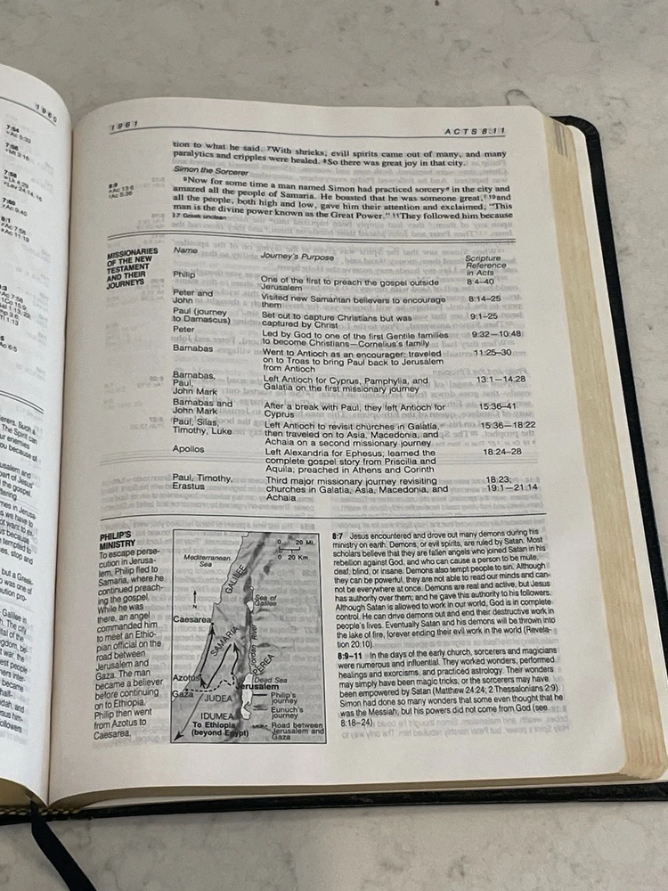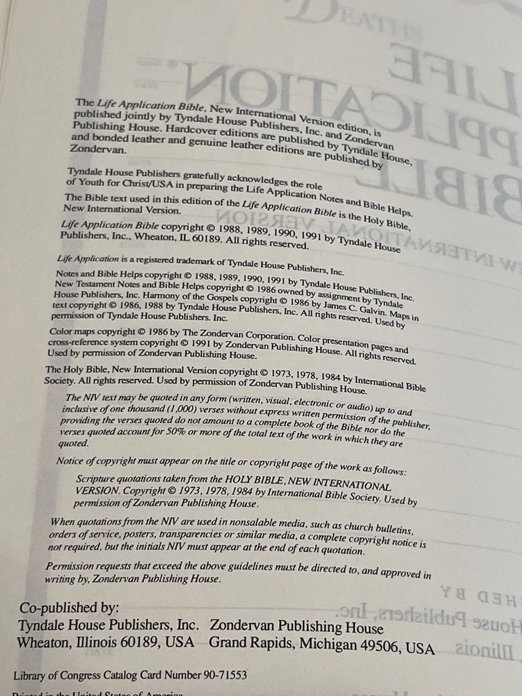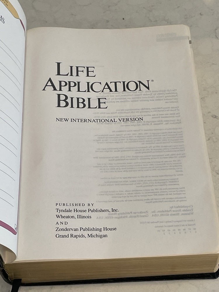 Dive into the world of spirituality and enlightenment with the NIV Life Application Study Bible. Published in 1991 by Zondervan, this edition is a treasure trove for both personal reflection and group study. The black bonded leather binding ensures durability, while the large print makes for comfortable reading. This paperback is more than a book; it's a guide to understanding the Holy Bible, complete with maps and illustrations by Tyndale Zondervan. It's rich in content, covering a range of topics from realism to naturalism, and is designed with gilded page ends for a touch of elegance. Whether you're a young adult or a seasoned reader, this Bible is an invaluable addition to your collection. I have this listed at acceptable condition as a few pages have yellow highlights and one page I noticed have red pen underlining words.