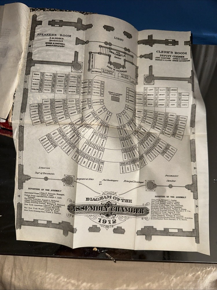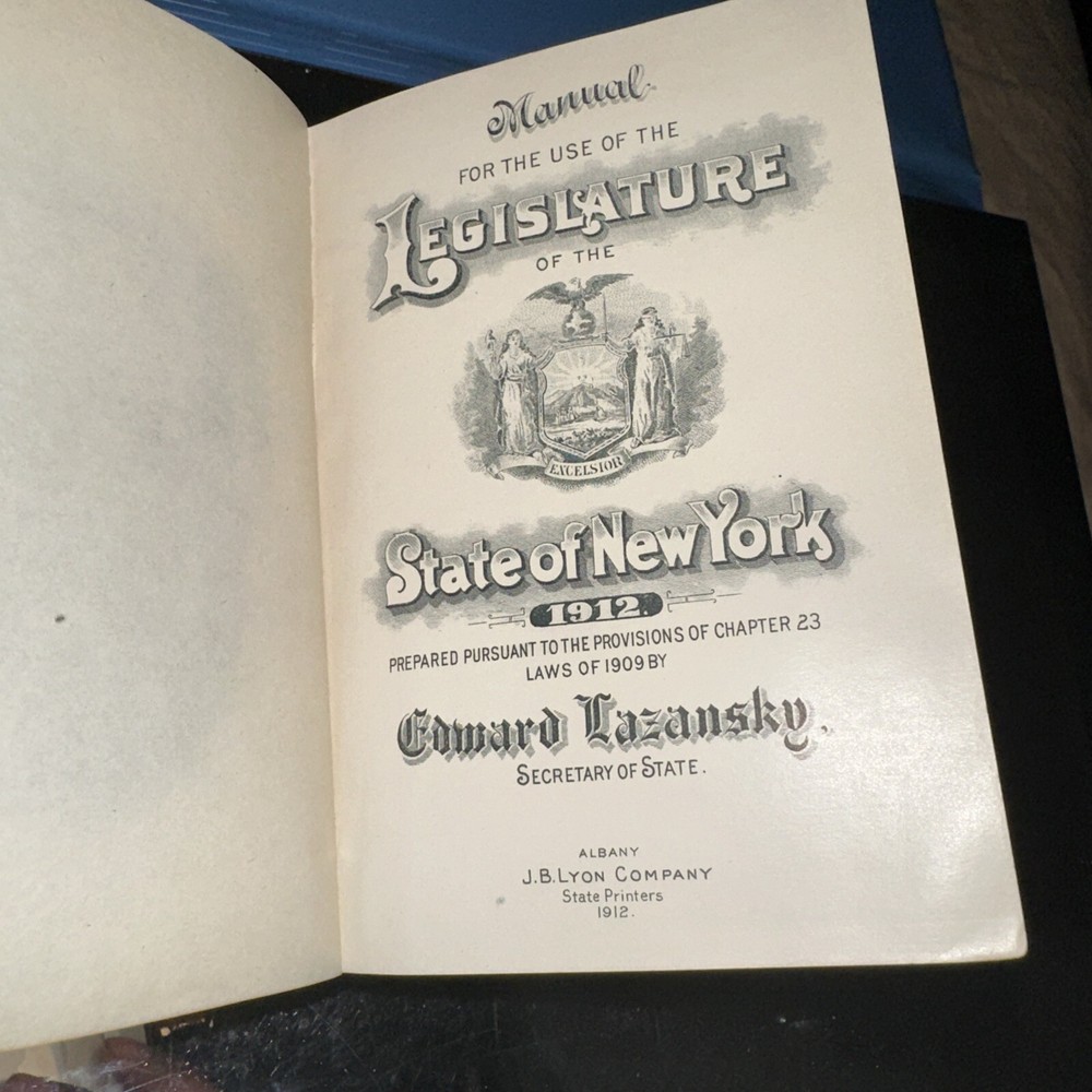 MANUAL FOR LEGISLATURE STATE OF NEW YORK 1912 Foldout Maps Leather Judge Book. Shipped with USPS Media Mail.