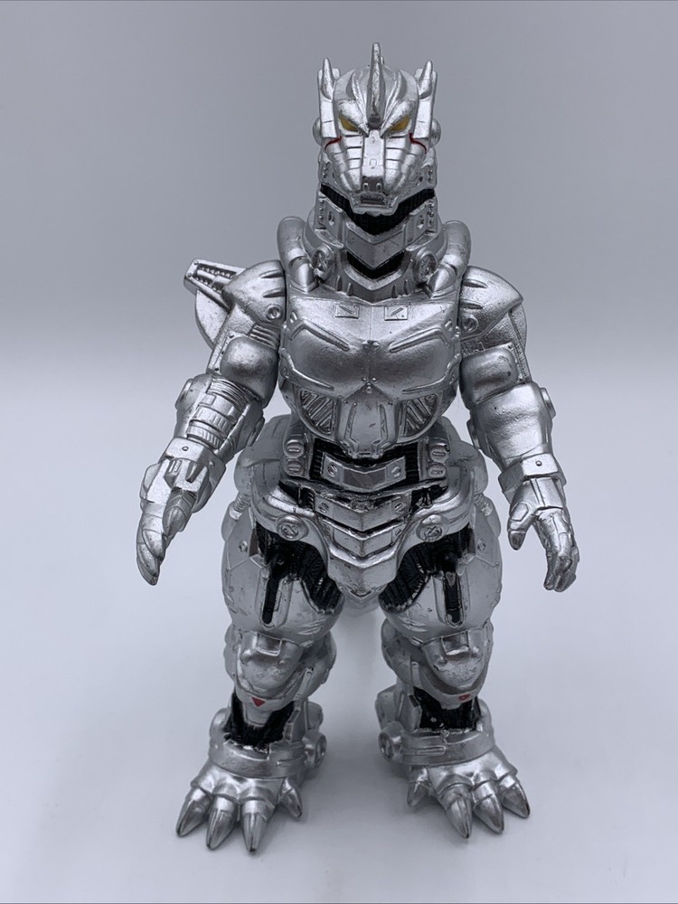 MECHAGODZILLA Godzilla 6 inch Adjustable Vinyl Action Figure 2005 Bandai Figure is in played condition and does have some flaws. Please review photos for item condition.