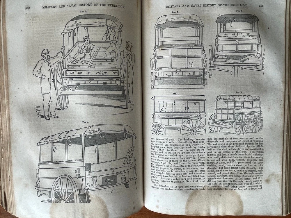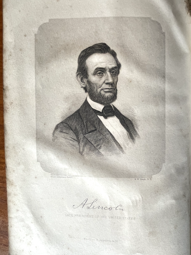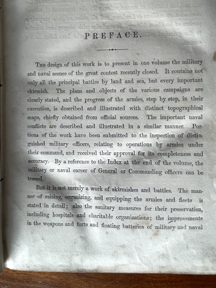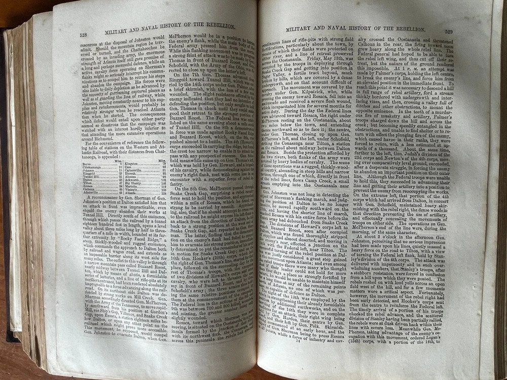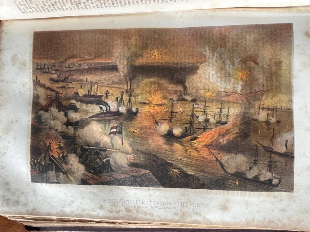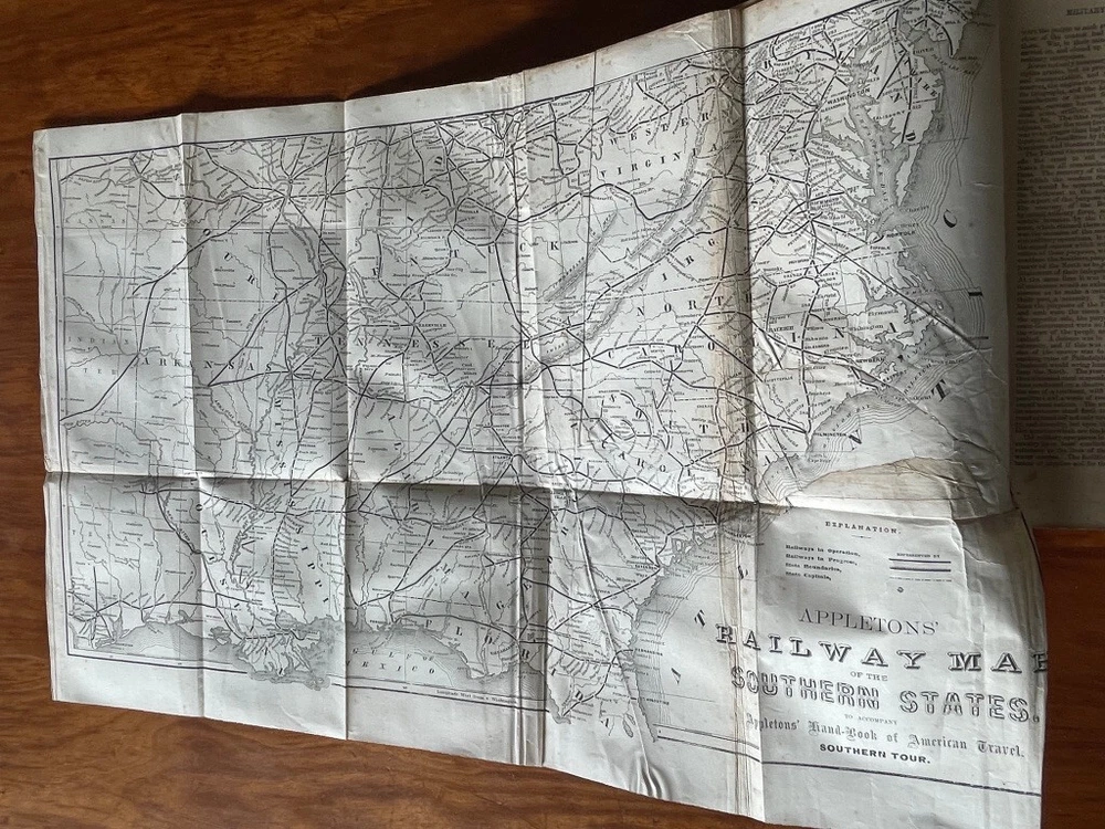 Up for sale is a full leather bound book titled "The Military And Naval History of the Rebellion in the United States" by W. J. Tenney. Contains Biographical Sketches of Deceased Officers, Illustrate with Steel Plate Portraits. Filled with illustrations throughout, some of which are in color. Contains one large fold out map of the Railways of the Southern States. The map is 15" by 23" in size. Published by D. Appleton, New York, 1867 printing. 843 pages, 7" by 10 1/4" in size. The leather bound book is in good condition, with wear to the covers and spine. Some cracking to the leather spine, The covers hinges are cracked, but binding is firm. Ink number marks on the top of the title page, no other markings. There is mild foxing throughout. The map is in good condition, with repairs to the back side of the map. Buyer to pay $8.00 for shipping. International buyers must use ebay global shipping. Box 3
