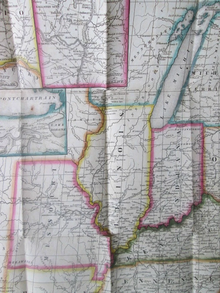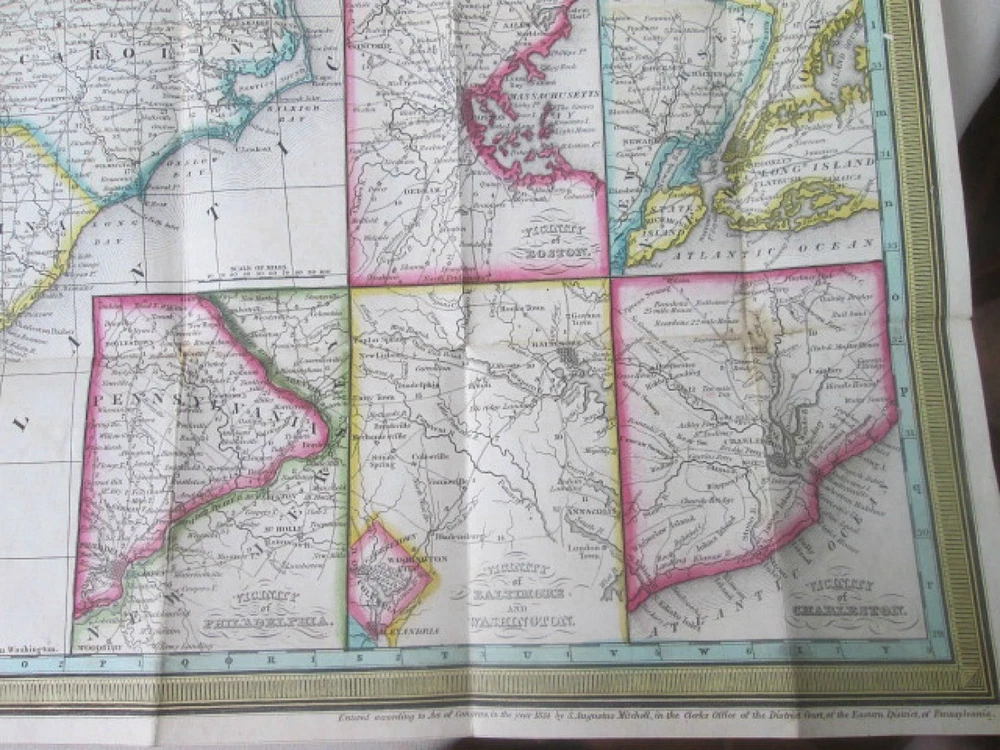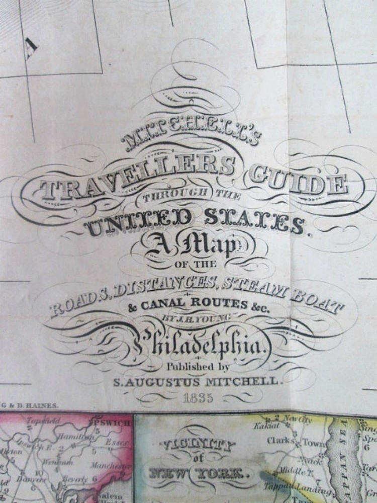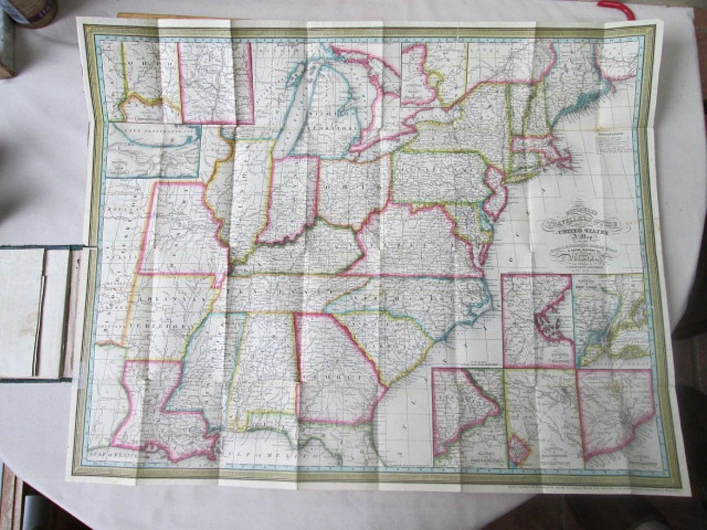 bc247. Map of Roads, Distances, Steam Boat and Canal Routes by J.B.Young. Pub. by S.Augusta Mitchell, 1835 with folding chart of Statistics. Chart and map open up to 22 1/2" x 18" each. 24mo, 5 3/8" tall. Green morocco leather with gilt titles and border. 3 or 4 small bug holes on spine. One fold split in map, closed with archival tape, a few small tears in fold corners, and 2 small tears where glued to binding, also closed, otherwise, Very Good condition. Please do not hesitate to e-mail with any questions. As Always, Satisfaction Guaranteed! PAYMENT: PayPal, but I am open to other ideas! I expect to receive payment within 10 days, unless we have made other arrangements. Most items are sent Parcel Select or First Class. If you prefer Priority mail, I will be glad to make the adjustment. I'm glad to combine multiple purchases in order to minimize shipping costs. I WILL SHIP INTERNATIONALLY, and I try to be as economical as possible with the shipping costs. RETURN POLICY: Satisfaction Guaranteed! Track Page Views With Auctiva's FREE Counter