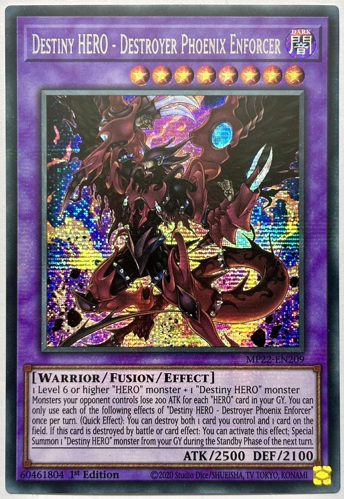 MP22-EN209 Destiny Hero - Destroyer Phoenix Enforcer - Secret Rare 1st Edition Near Mint YuGiOh Card All conditions have been evaluated using Ebay's card condition guidelines for collectible card games, which can be found at a glance in the images and also viewed here in more detail: eBay card condition guidelines | eBay.co.uk I am currently selling all cards within my collection, with many still to be listed. Please check out my eBay profile for other offerings. Thanks for viewing!
