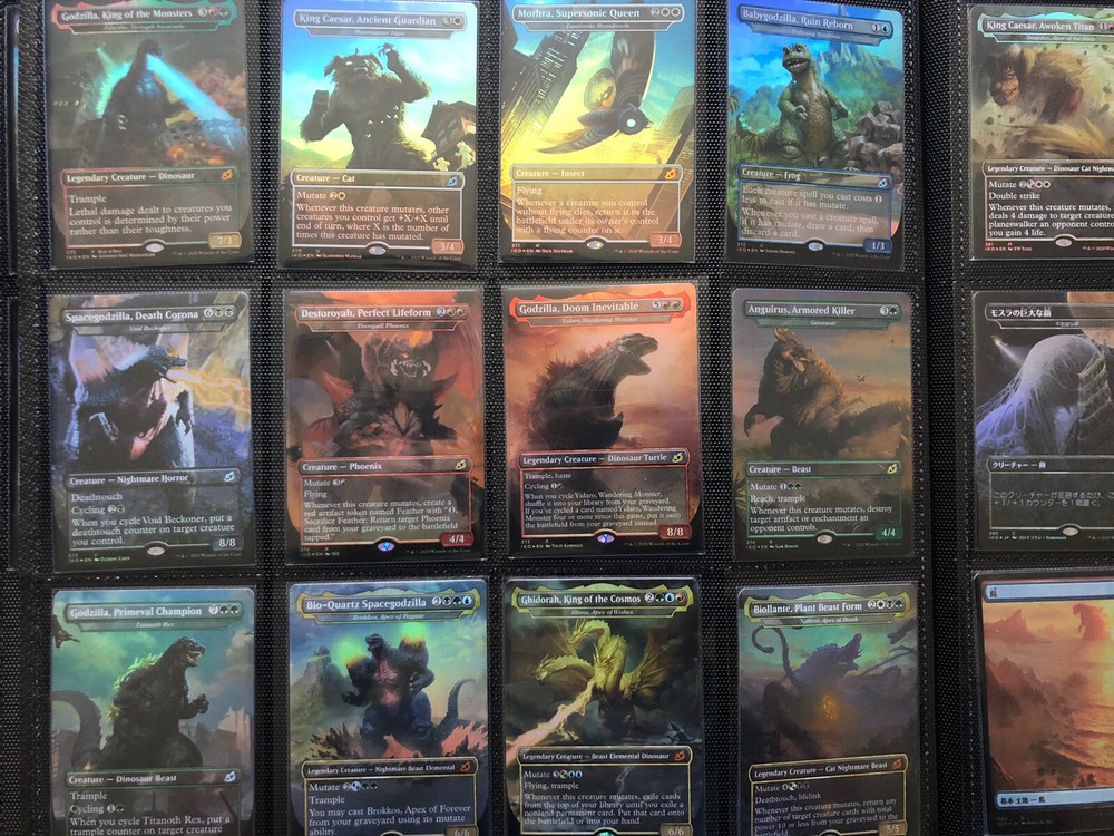 MTG ~ Ikoria: Lair of Behemoths Godzilla Alternate Artwork Card Set. 24 cards total. Includes 18 English cards and 3 Japanese exclusive cards plus the buy a box promo card. Also includes one of each Secret Lair Godzilla Lands. Condition is New, pack fresh never played. Placed in perfect fit sleeves. Shipped with USPS First Class.