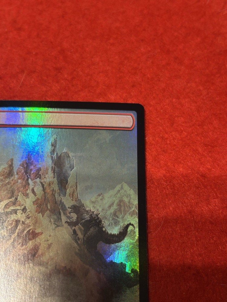 This MTG Mountain foil is a stunning addition to any collection! The Godzilla artwork pops with vibrant colors, and the Japanese text adds an exotic flair. Arrived in great condition as described, carefully packaged from Japan. Shipping was smooth, though customs fees may apply. Perfect for players or collectors who love unique lands—highly recommend!