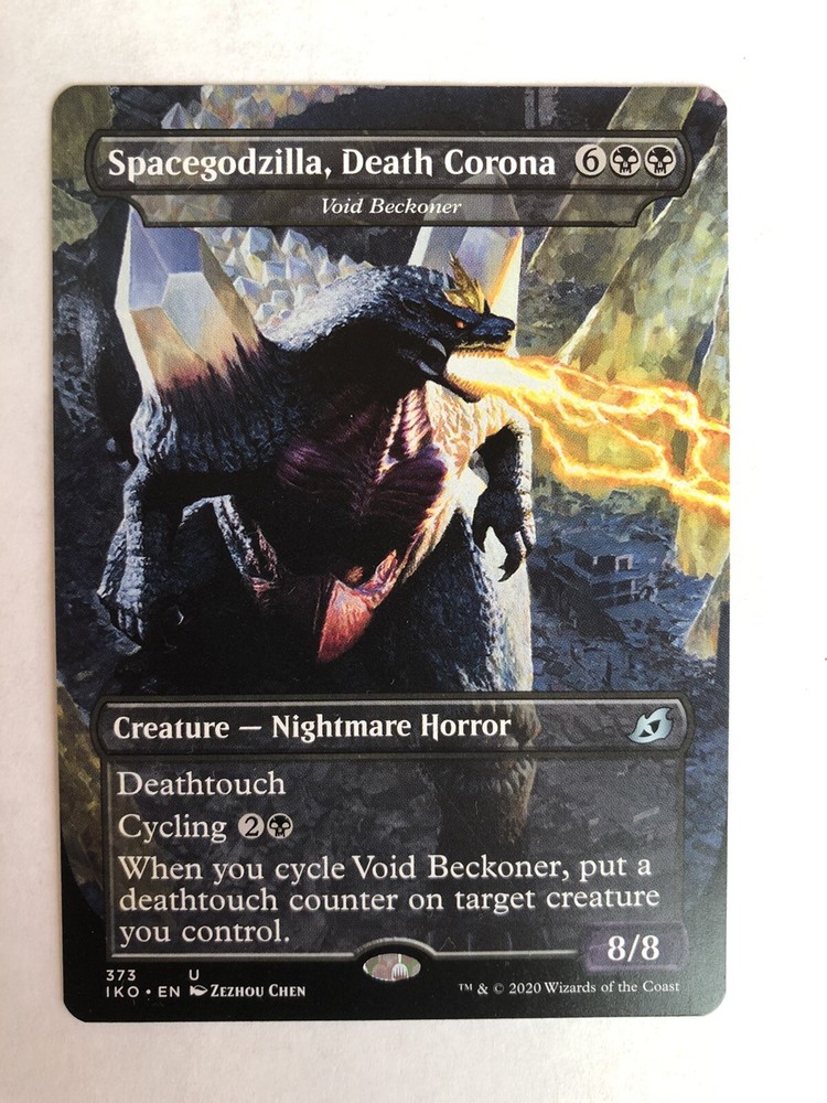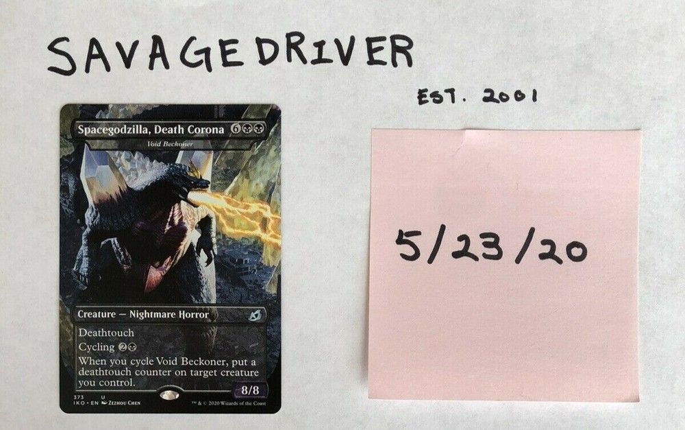 MTG Spacegodzilla, Death Corona (Void Beckoner) Ikoria Promo. Condition is Pack Fresh New. Actual card pictured, please contact me with questions that pictures can't answer, thanks! This card will not be reprinted as the new prints will be renamed to Spacegodzilla, Void Invader. Cards will be shipped sleeved in a top loader. I ship out all orders within 24 hours of payment or when the post offices opens if purchased over the weekend. Thanks for your consideration!