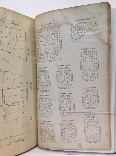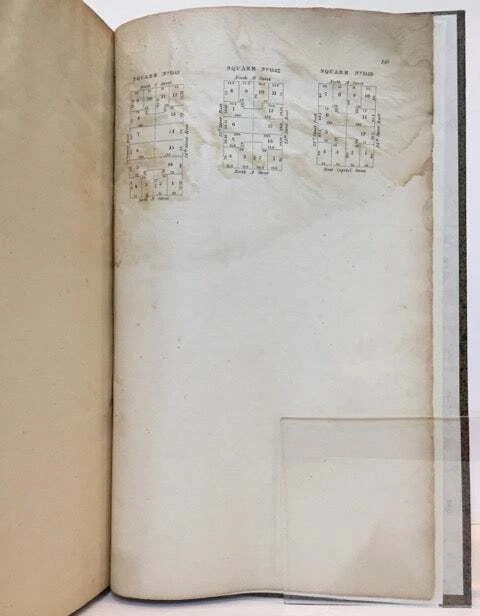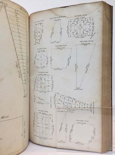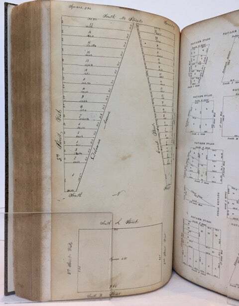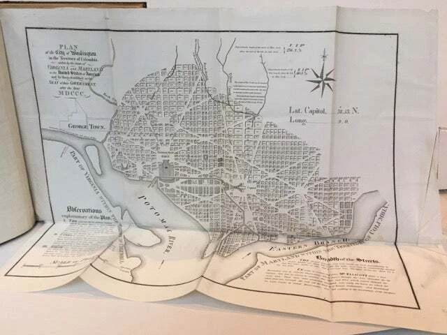 Maps of the District of Columbia and City of Washington, and Plats of the Squares and Lots of the City of Washington.; Printed in pursuance of a resolution of the Senate of the United States Title: Maps of the District of Columbia and City of Washington, and Plats of the Squares and Lots of the City of Washington.; Printed in pursuance of a resolution of the Senate of the United States Publication: Washington, (DC): Printed by A. Boyd Hamilton, 1852 Description: First edition. Folio. (2), 159 pp. [printed rectos only], completely interleaved (squares 166, 171, 226, 284, 326, 355, 391, 439, 521, 550-554, 566, 591, 596-597, 648, 917, 934-935, 994-996, 1024-1025, 1058, and 1084 have been completely redrawn on facing leaf in ink; several pencil or ink annotations along the way). Three large folding maps (one with a long repaired tear, another repaired at the hinge). Cover title: "Maps of Washington." Elaborate survey of the District, each page with six or more squares divided into numbered lots; the squares correspond to those represented on one of the large maps; the other two large maps are versions of Ellicott's famous maps, surveyed as the city was founded. Phillips “Atlases,” p. 266. Bryan “Bibliography of the District of Columbia,” p. 118. Recent brown quarter-morocco and brown speckled paper, contrasting, leather spine label. Contemporary owner’s name on title page, old stain to upper edge, leaving a circular tideline in upper margin of text, just into text on many leaves, some light foxing, a good solid copy in an attractive new binding. Seller ID: 63091 Subject: Americana, District of Columbia We are a Washington, D.C. based bookstore in business for over 40 years. We specialize in Americana and general Antiquarian books. Terms All orders ship within three business days. Standard mail is USPS Priority Mail. Expedited and international shipping are also available. We offer combined shipping on multiple orders. All items are guaranteed to be as described or they may be returned within 30 days of receipt for a full refund. This listing was created by Bibliopolis.