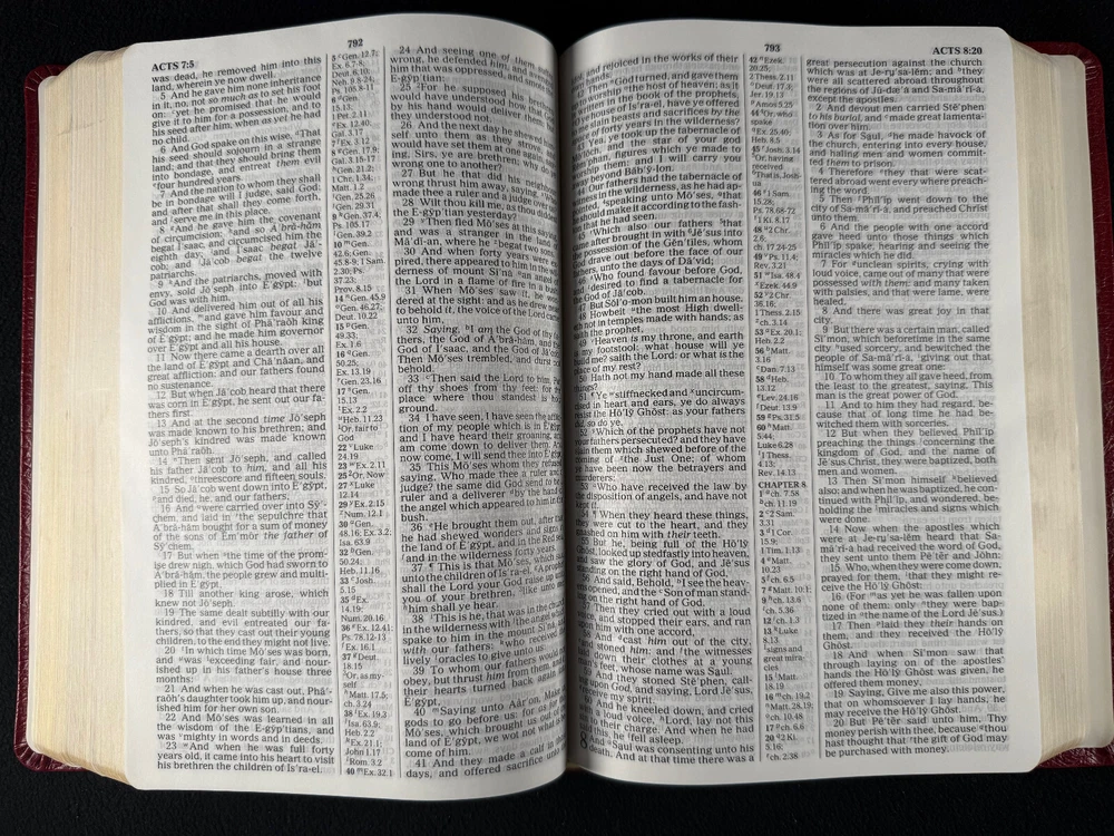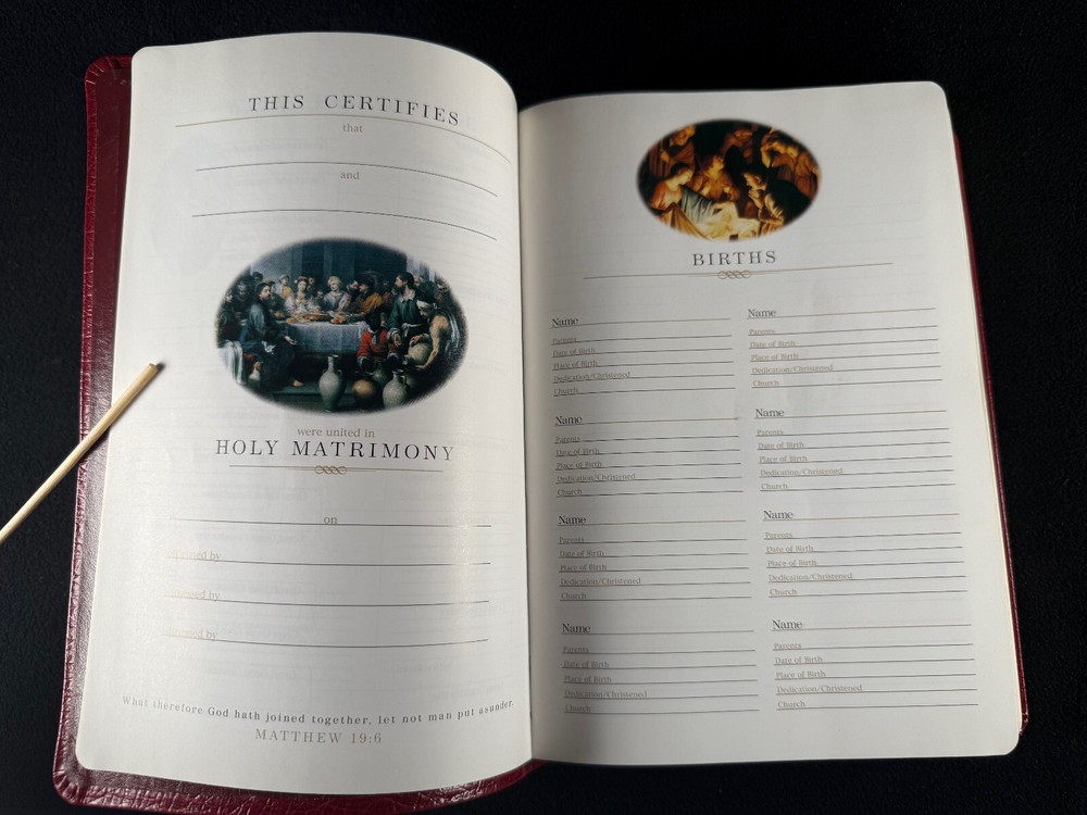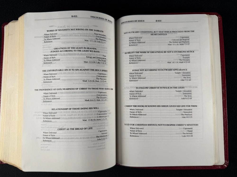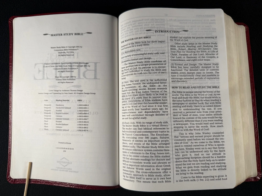 This Master Study Bible is a beautiful leather-bound KJV edition with clean, unmarked pages. While the binding glue shows some age and the page edges have slight wear, it’s still a solid, usable Bible. The seller takes great care in packaging—no stickers, just secure shipping. Perfect for collectors or readers who appreciate vintage Bibles with character!