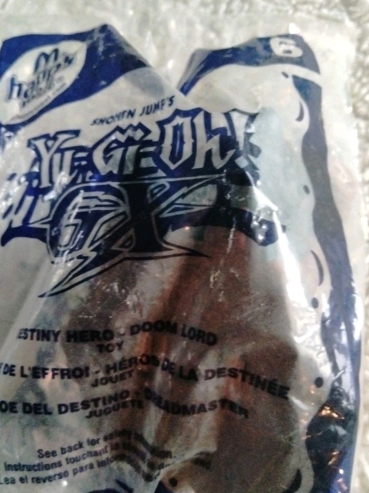 The product is a McDonald's 2006 Yu-Gi-Oh! toy featuring the character Destiny Hero Doom Lord. This collectible item does not come with any cards but is focused on the popular Yu-Gi-Oh! franchise. With the McDonald's branding and specific year release, this toy is a sought-after piece for fans and collectors of Yu-Gi-Oh! memorabilia. With card. "Never opened." Please see photos for your consideration.