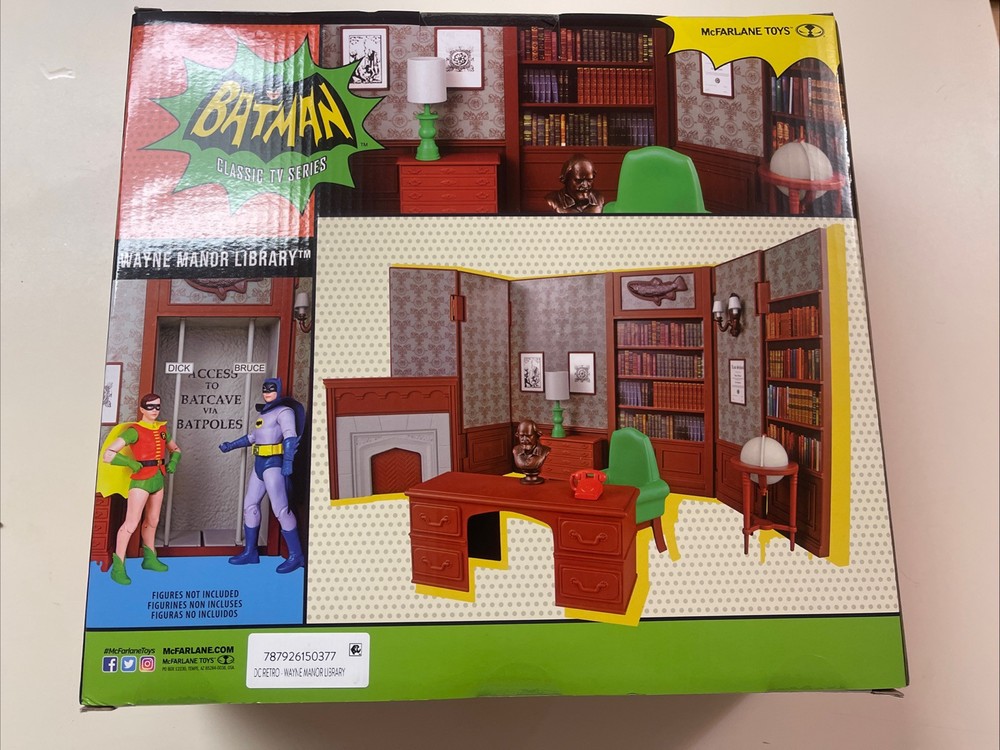 Figures not included!!! Introducing the McFarlane Toys - DC Retro Wayne Manor Library (Batman 66') Playset! This highly detailed playset features the iconic Wayne Manor library from the classic 1966 Batman TV show. The playset includes Batman, Robin, and the Joker figures, as well as a variety of accessories and props. With a release date of April 7, 2023, this toy is perfect for fans of all ages. The manufacturer recommended age is 14 years and up, and the playset is made in China by McFarlane Toys. The product dimensions are 12 x 3.75 x 11 inches, and the item weight is 1.6 ounces. This toy is a must-have for any Batman or DC Comics fan, and it is sure to provide hours of fun and imaginative play.