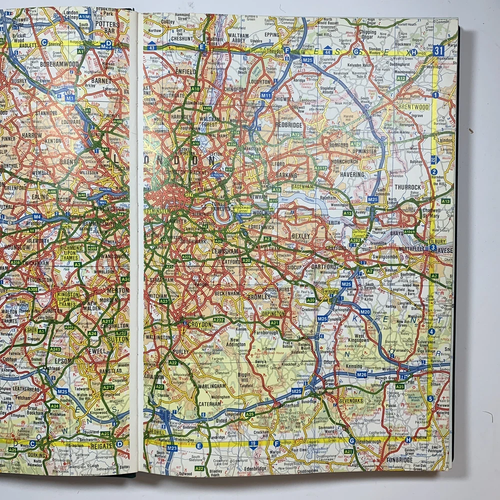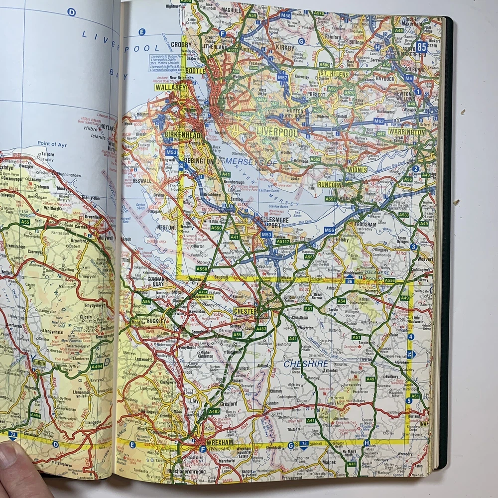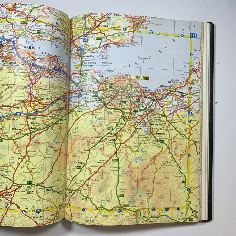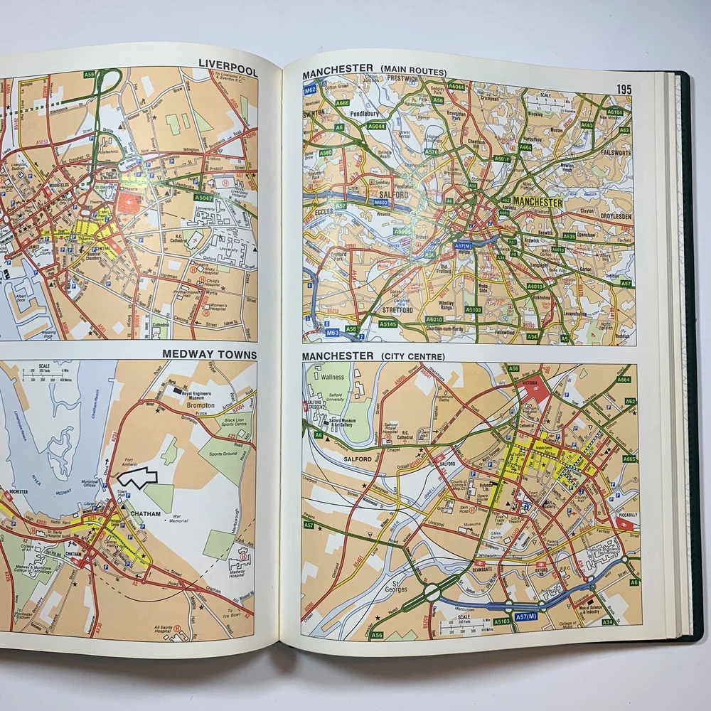Merritts Jaguar portfolio in which is contained a 1993 A-Z Road Atlas of Great Britain. The 253 page road atlas is in near mint condition. It has a green faux leather binder with Merritts Jaguar logo in gold lettering on the front. Also inside is a letter from Merritts with an invitation to the owner to visit the Jaguar factory in 1993. The invitation is on Merritts letterhead. No flaws to note.