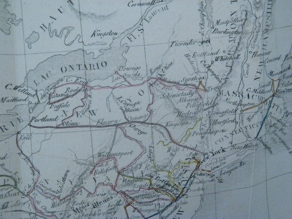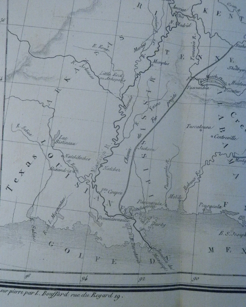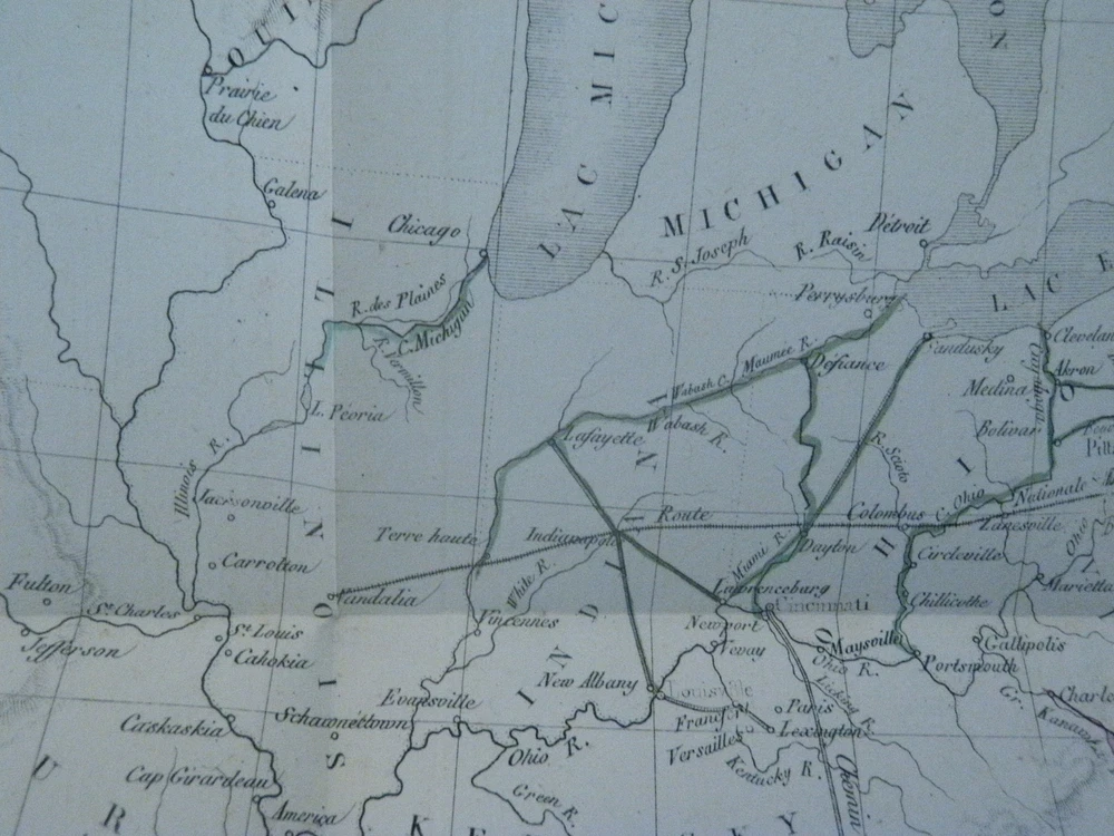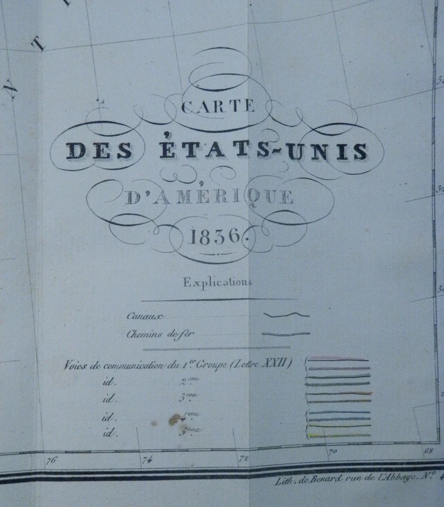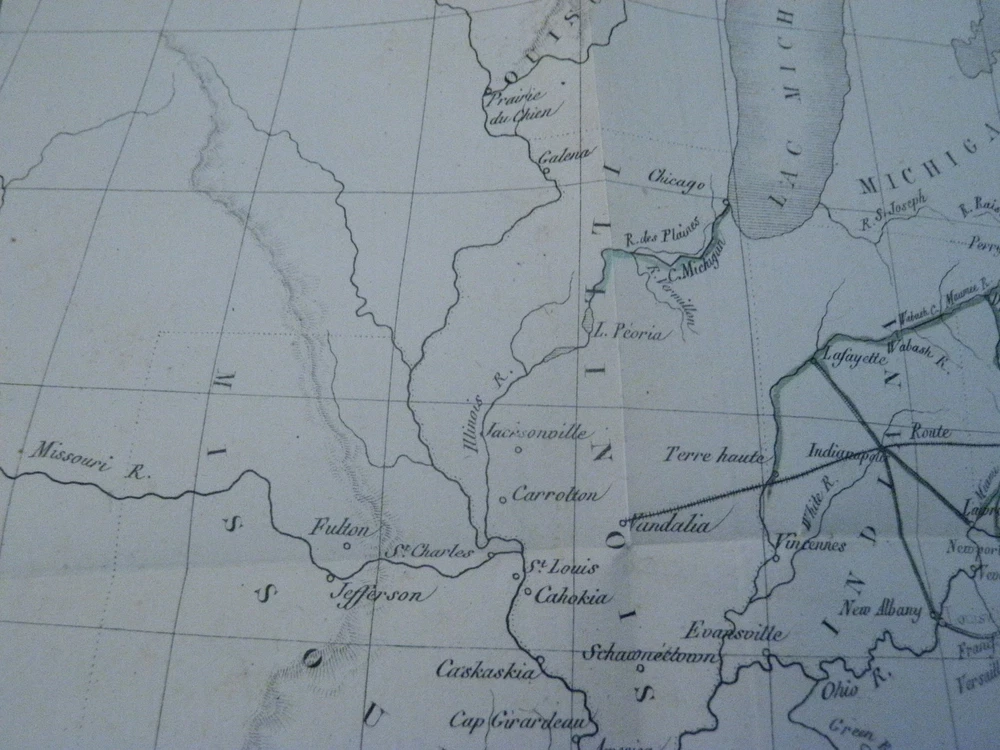 Michel Chevalier LETTRES sur L'Amerique du Nord - 1838 Color USA Folding Map Michel Chevalier LETTRES sur L'Amerique du Nord - 1838 Color USA Folding Map TITLE: Lettres sur l'Amerique du Nord : par Michel Chevalier, avec une carte des Etats-Unis d'Amerique. Troisieme edition revue, corrigee, augmentee de plusieurs chapitres et d'une table raisonnee des matieres. AUTHOR: Michel Chevalier PUBLISHER : C. Gosselin et cie, Paris DATE: 1838 Third Edition DESCRIPTION: 2 v. 22 cm. 2 vol. xvi, 439 p., [1] Folding map, ; 535-[1] p. CONDITION NOTES: VERY GOOD Corners bumped and some rubbing to the marbled boards. Dampstaining with a corner tideline up to page 30, vol.1 only. Scattered spotting elsewhere. Full caps, excellent page and cover attachment. Map is bright and properly folded. BINDING: Period black polished calf over marbled boards. Michel Chevalier (13 January 1806 – 18 November 1879) was a French engineer, statesman, economist and free market liberal. . In 1830, after the July Revolution, he became a Saint-Simonian, and edited their paper Le Globe. The paper was banned in 1832, when the "Simonian sect" was found to be prejudicial to the social order, and Chevalier, as its editor, was sentenced to six months imprisonment. . After his release, Minister of the Interior Adolphe Thiers sent him on a mission to the United States and Mexico, to observe the state of industrial and financial affairs in the Americas. In Mexico he exchanged ideas with the mineralogist and politician Andrés Manuel del Río. It was during this trip that he also developed the idea that the Spanish-speaking and Portuguese-speaking parts of the Americas shared a cultural or racial affinity with all the European peoples with a Romance culture. Chevalier postulated that this part of the Americas were inhabited by people of a "Latin race," which could be a natural ally of "Latin Europe" in its struggle with "Teutonic Europe," "Anglo-Saxon America" and "Slavic Europe."[1] The idea was later taken up by French and Latin American intellectuals and political leaders of the mid and late nineteenth century, who no longer looked to Spain or Portugal as cultural models, but rather to France, and who coined the term "Latin America." The present volume Lettres sur l'Amerique du Nord is the third edition his popular travels. The map is worthy of note as it shows the extent of canals and roads built to facilitate trade throughout the United States of 1830. About the same time as this edition, Des intérèts matériels en France (1837), after which his career took off. At age 35, he was appointed professor of political economy at the Collège de France. He was elected a député for the département of Aveyron in 1845, an appointment of Senator followed in 1860. In 1859, he was elected a foreign member of the Royal Swedish Academy of Sciences. Together with Richard Cobden and John Bright he prepared the free trade agreement of 1860 between the United Kingdom and France, which is still called Cobden-Chevalier Treaty. Listing and template services provided by inkFrog