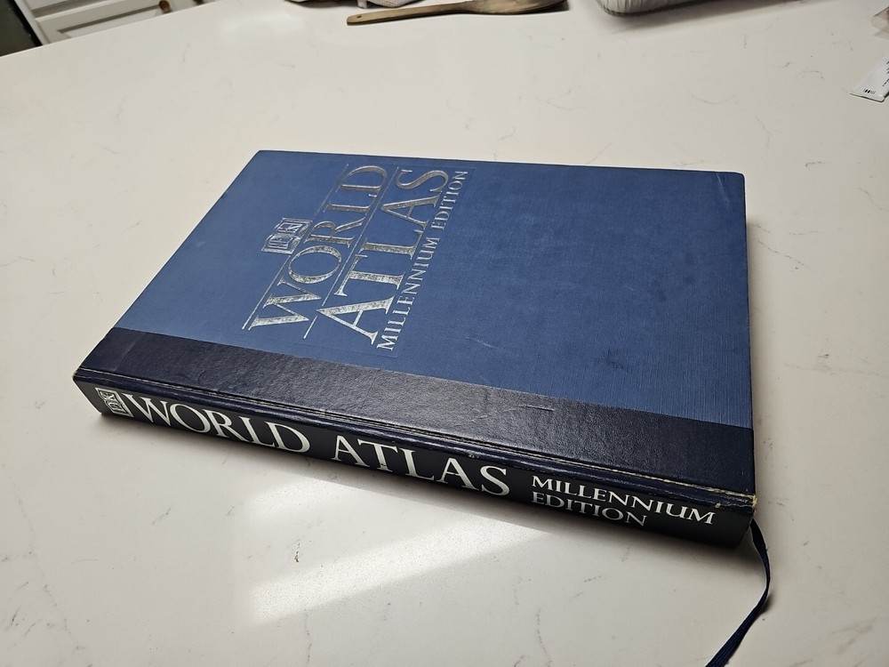 This leather-bound hardcover atlas from Rand McNally is a true gem for any collector interested in maps and atlases. With its intricate details and beautiful design, it is a perfect addition to any collection. The atlas was manufactured in the United States in 1999 and features a stunning navy blue cover. The Millenium World Atlas is a must-have for any serious collector, containing thousands of maps and atlases from all around the world. This particular copy is in excellent condition and would make a wonderful gift for anyone interested in geography or world cultures. Take a journey around the world without ever leaving your home with this beautiful and informative atlas.