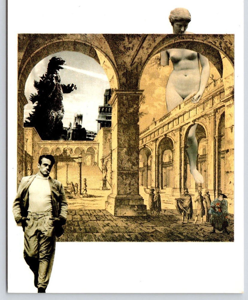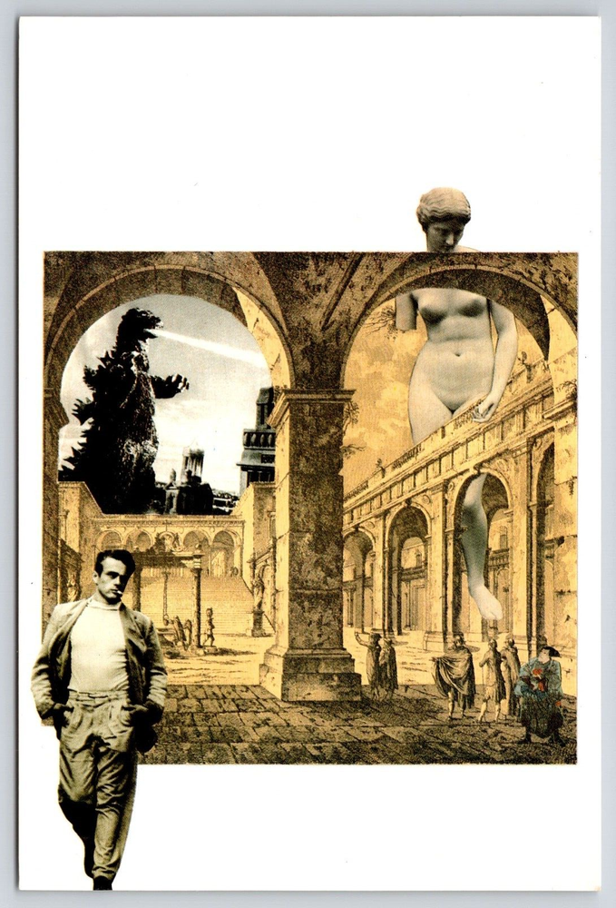 Modern Pop Art Collage Postcard Godzilla James Dean Aphrodite Samurai in Rome , please see condition notes and photos for details. NOS 1993...