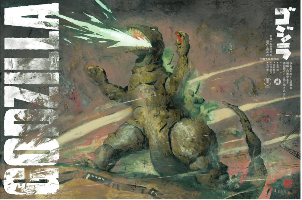 Godzilla (Kent Williams) Screenprinted Poster. Will be sent in original tube and packaging from MONDO. ゴジラ! Hail to the King of the Monsters and Toho Studios’ tremendously influential 1954 film, GODZILLA. Artist Kent Williams’ design brings the terror and fury of Godzilla’s original incarnation to life in this stunning print. Product Details: Edition size: 225 Height: 24" Printer:DL Screenprinting Print type: Screenprint Width: 36"