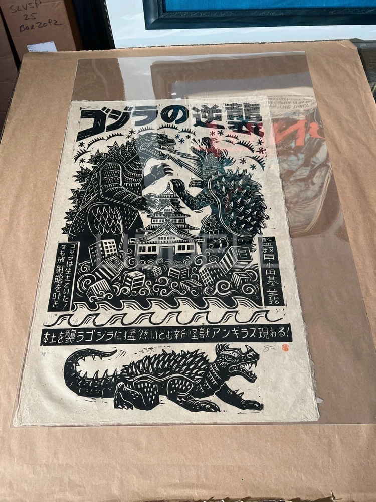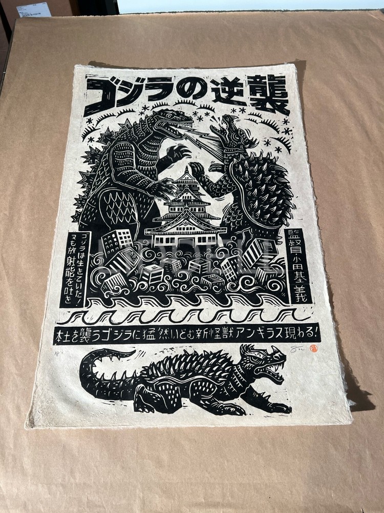 Official Mondo Movie Poster by Attack Peter for Ishiro Honda and Motoyoshi Oda's Godzilla Raids Again Artist Stamped/Remarqed edition Signed and labeled AP Size: 20X30 Mint/near mint. Stored flat in Mylar sleeve, in flat file, in smoke free home. Shipping Ships fully insured USPS priority mail or USPS priority mail international. I ship using new materials. New Kraft, new piece of glassine over image, one piece of non stick artist tape w/ tab for easy removal (as opposed to tons of tape you have to dig at), bubble on both ends in a new Yazoo tube Usually ship next day. Check my feedback on packaging. Almost all feedback as a seller is by shipping prints both domestic and international. International shipping: Import duties, taxes, and charges and not included in the item price or shipping. These charges are the buyer’s responsibility. If unfamiliar please check with your country's custom office to determine what these additional costs will be prior to buying. Pictures My pictures are of the actual print. If you have any questions feel free to reach out. Thanks for looking.