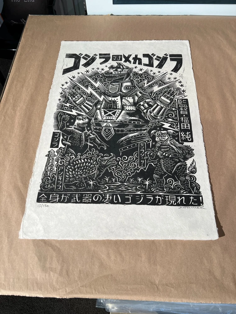 Official Mondo Movie Poster by Attack Peter for Jun Fukuda's Godzila Vs. Mechagodzilla Signed and numbered 13 out of 120 Size: 20X30 Mint/near mint. Stored flat in Mylar sleeve, in flat file, in smoke free home. Shipping Ships fully insured USPS priority mail or USPS priority mail international. I ship using new materials. New Kraft, new piece of glassine over image, one piece of non stick artist tape w/ tab for easy removal (as opposed to tons of tape you have to dig at), bubble on both ends in a new Yazoo tube Usually ship next day. Check my feedback on packaging. Almost all feedback as a seller is by shipping prints both domestic and international. International shipping: Import duties, taxes, and charges and not included in the item price or shipping. These charges are the buyer’s responsibility. If unfamiliar please check with your country's custom office to determine what these additional costs will be prior to buying. Pictures My pictures are of the actual print. If you have any questions feel free to reach out. Thanks for looking.