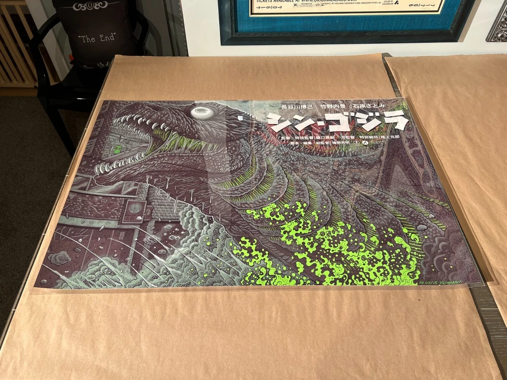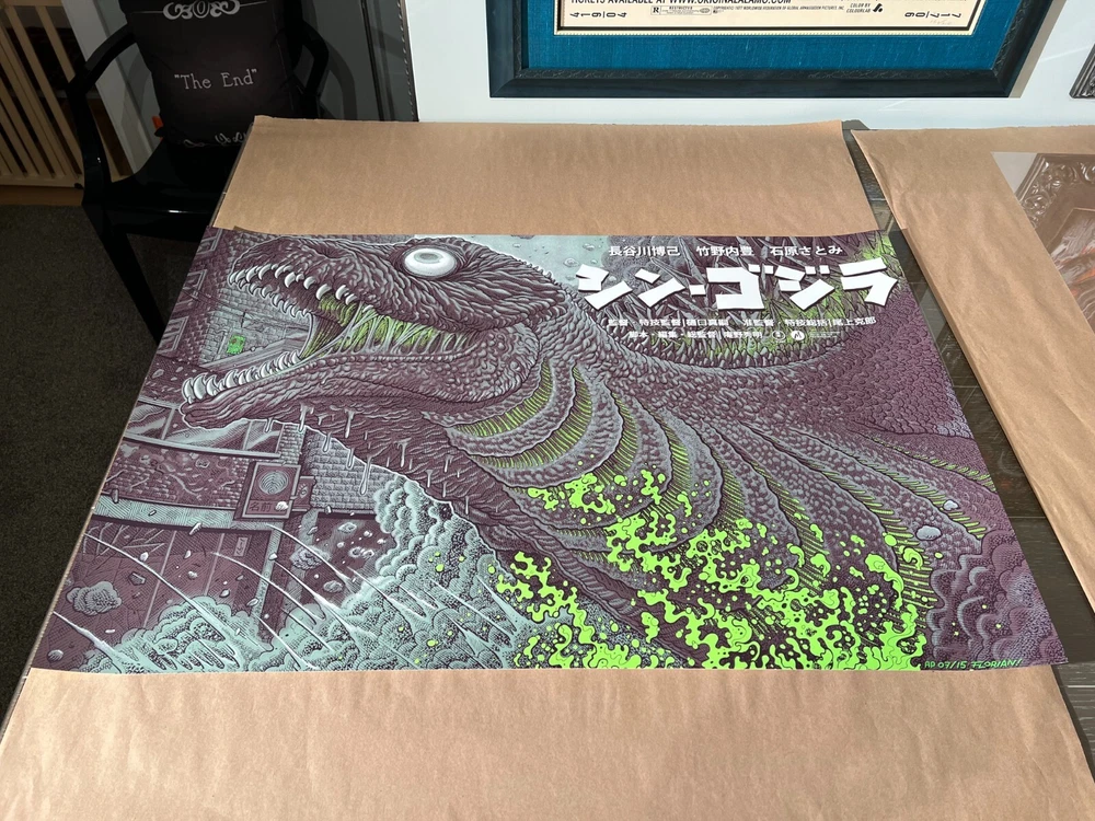 Florian Bertmer's official Mondo movie poster Shin Godzilla Green Toxic Signed and #d out of 15 and Remarqued Size: 36X24 Mint/Near Mint. Stored flat in Mylar sleeve, in flat file, in smoke free home. Shipping Ships fully insured USPS priority mail or USPS priority mail international. I ship using new materials. New Kraft, new piece of glassine over image, one piece of non stick artist tape w/ tab for easy removal (as opposed to tons of tape you have to dig at), bubble on both ends in a new Yazoo tube Usually ship next day. Check my feedback on packaging. Almost all feedback as a seller is by shipping prints both domestic and international. International shipping: Import duties, taxes, and charges and not included in the item price or shipping. These charges are the buyer’s responsibility. If unfamiliar please check with your country's custom office to determine what these additional costs will be prior to buying. Pictures My pictures are of the actual print. If you have any questions feel free to reach out. Thanks for looking.