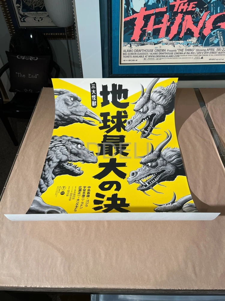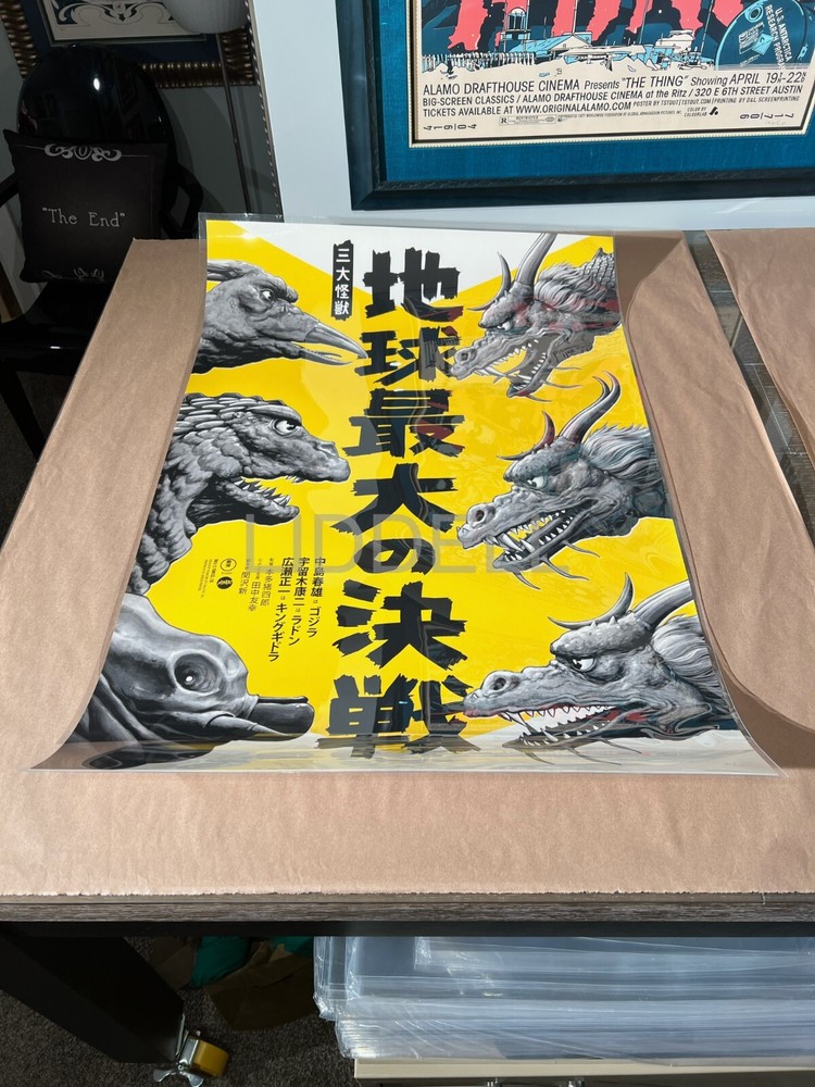 Phantom City Creative's official Mondo movie poster for Ishiro Honda's Ghidorah, the Three-Headed Monster Size: 24X36 Variant Numbered out of 125 Mint/Near Mint. Stored flat in Mylar sleeve, in flat file, in smoke free home. Shipping Ships fully insured USPS priority mail or USPS priority mail international. I ship using new materials. New Kraft, new piece of glassine over image, one piece of non stick artist tape w/ tab for easy removal (as opposed to tons of tape you have to dig at), bubble on both ends in a new Yazoo tube Usually ship next day. Check my feedback on packaging. Almost all feedback as a seller is by shipping prints both domestic and international. International shipping: Import duties, taxes, and charges and not included in the item price or shipping. These charges are the buyer’s responsibility. If unfamiliar please check with your country's custom office to determine what these additional costs will be prior to buying. Pictures My pictures are of the actual print. If you have any questions feel free to reach out. Thanks for looking.