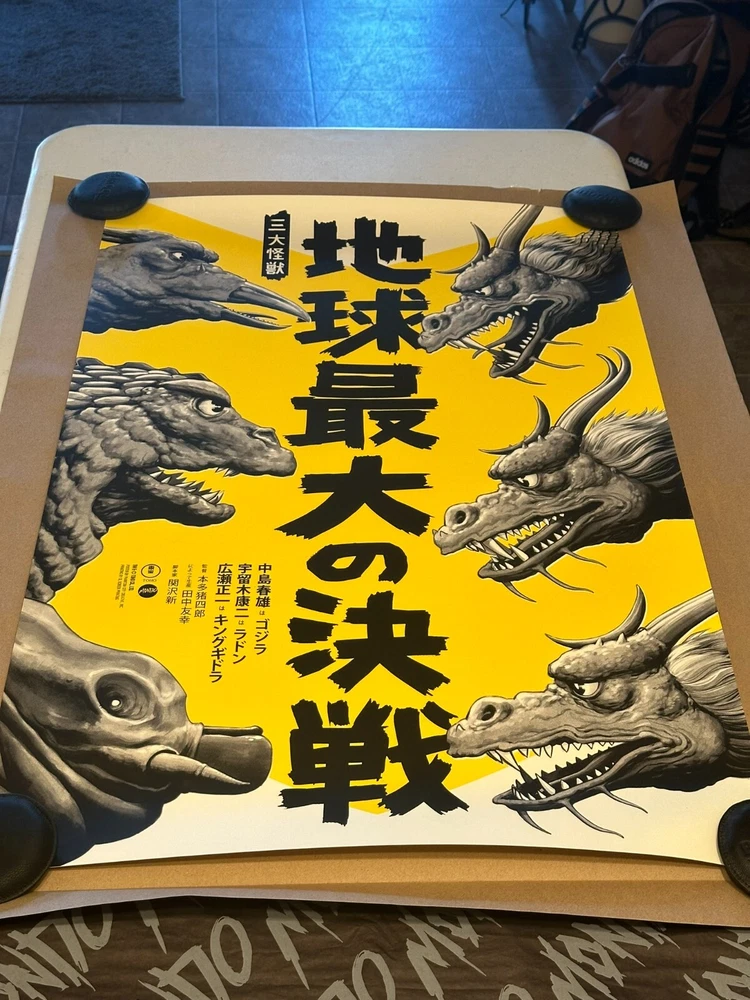 This stunning Mondo print features the iconic Godzilla in his Ghidorah Variant form, printed on high-quality paper with stunning attention to detail. The artwork is perfect for any fan of the classic monster movie and is sure to make a great addition to any collection. The print is an original, will be shipped in a poster tube. Don't miss your chance to own this rare piece, with only 125 prints available in the world.