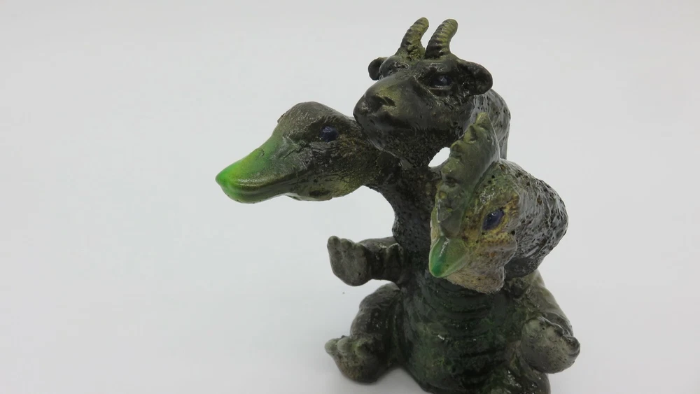 3 Headed Monster Unique Artist Signed Goat, Duck, Chicken, not seen in Godzilla!. Condition is "Used". Shipped with USPS First Class. This is what I believe Bandi would have created if they were located in the Mid Western United States. This is most likely a 1 of a kind artist created piece where they have combined elements from several creatures to create this Farm monstrosity. This has a Godzilla like body, but short armored tail & back & has a Duck, Goat & Chicken's heads & necks grafted onto the body. This would not be confused with Ghidorah Gidor due to no wings and non dragon heads. I think this would still look good with your Godzilla display, let your friends guess which movie this was from! The bottom has the artists signature & this is dated from 2010. This sits about 7" tall, 6" front to back & is about 4 1/2" wide. Before packaging this weigh about 1lb 3 oz. Except for a small piece on the tip of the trail, the paint is still in excellent condition. Don't let this piece of unique & bizarre slip away & add this to your collection today! Please take a close look at all of the included images in this listing as they are also part of the description. If you have any questions, feel free to reach out and we will respond as quickly as we can. We also have other unique items listed which can be browsed by clicking on our seller link at the top of the page. If you purchase more than one of our items, we will gladly combine shipping when possible. Please request an adjusted invoice before making payment to ensure correct charges. Thank you for stopping by and have a Wonderful Day.