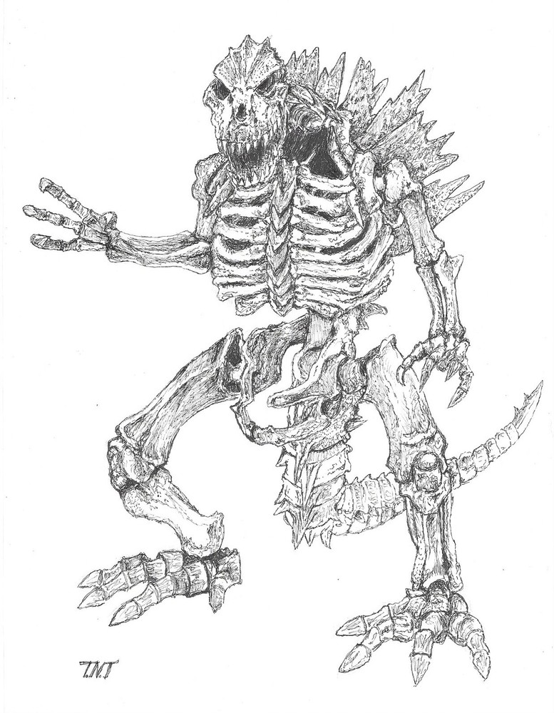 Monster Art Godzilla Skeleton illustration original Artwork ink drawing. SIGNED BY ARTIST. High quality art, very detailed. 8.5" x 11" Artwork is drawn on acid free Crecent heavy weight paper. Unframe...
