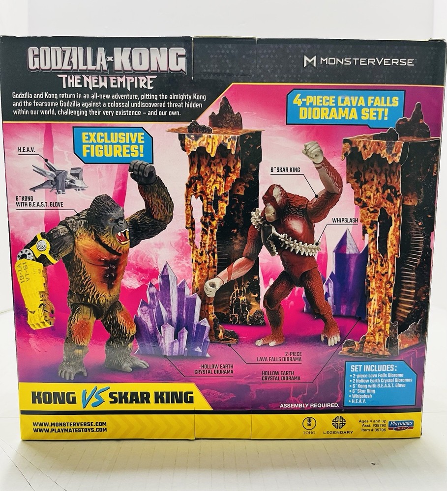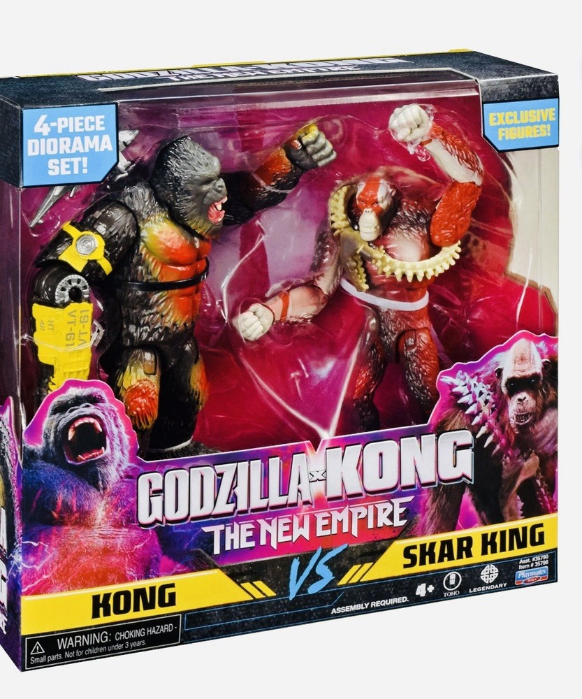 Return to Hollow Earth with Godzilla and Kong in an all-new adventure! When a colossal threat is discovered within our world, Godzilla and Kong must fight to protect their existence—and our own. The Godzilla x Kong Versus 2-Pack brings an epic battle to your collection, with exclusive decoration that captures each figure’s detailed movie look. Set includes exclusively detailed 6” Kong and Skar King figures, four diorama set pieces, Kong’s H.E.A.V. Vehicle, and Skar King’s Whipslash. They come in a unique Godzilla x Kong package! Godzilla vs. Kong Collectible 4+ Action Figures, Multicolor, 3.50" x 9.50" x 9" Authentic Design: These Godzilla x Kong 6" figures feature highly detailed designs with exclusive decoration that captures the essence of Kong and Skar King, ensuring an authentic representation of their iconic characters Accessories Included: Enhance your playtime or display with Kong’s H.E.A.V. Vehicle and Skar King’s menacing Whipslash, each featuring exclusive detailing for added realism Scene Creation: Build your own Hollow Earth with exclusive diorama set pieces inspired by the new Godzilla x Kong movie, allowing you to recreate your favorite battle scenes Movie Packaging: The figures are packaged in bright, bold Godzilla x Kong packaging, inspired by the fearsome Hollow Earth landscape from the film Collectible Series: Complete your collection with other figures and accessories from the Godzilla x Kong line, featuring a variety of characters to recreate epic battles and adventures in the MonsterVerse