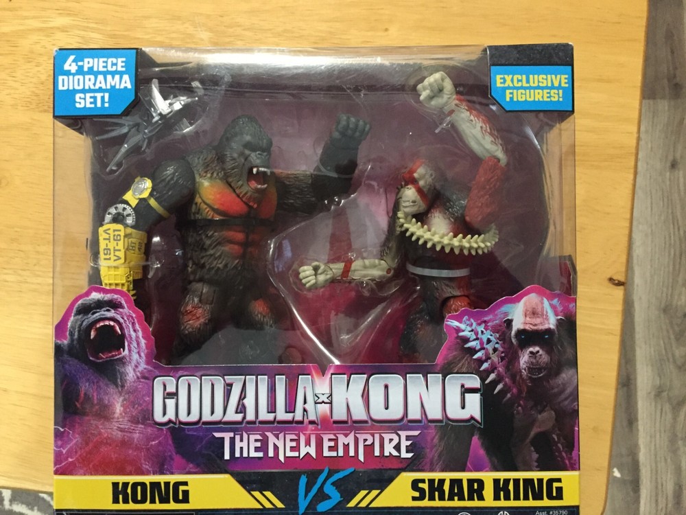 The product is a 6-inch action figure set featuring characters from the MonsterVerse, specifically Kong and Skar King, from the movie "The New Empire." This 4-piece diorama set is part of the Playmates Toys brand's Monsterverse series, and is a licensed reproduction. The figures are made of plastic and come in original, unopened packaging. Perfect for fans of Kong Kong and the MonsterVerse franchise, this action figure set is a must-have for collectors and enthusiasts alike.