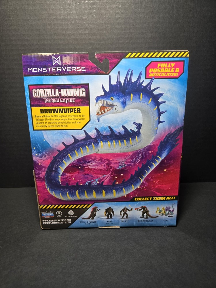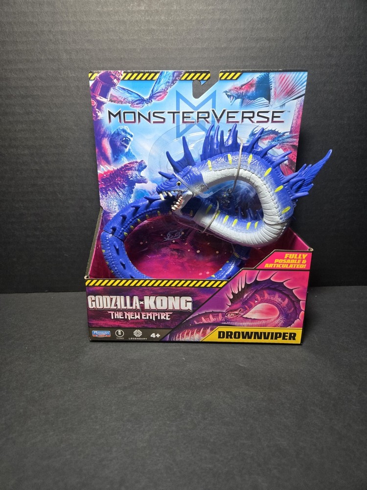 Embark on an epic adventure with the MonsterVerse GODZILLA x KONG: The New Empire DROWNVIPER action figure, model #35215. This intricately designed piece from Playmates Toys captures the essence of the franchise's latest installment, showcasing the formidable Drownviper character in stunning detail. Crafted with durable plastic and featuring vibrant, multicolor aesthetics, it's a must-have for fans and collectors alike. This action figure, still in its original unopened packaging, is a licensed reproduction that represents the pinnacle of craftsmanship in the 2020-now time period. It includes all items as depicted in the accompanying picture, and is suited for those aged 3-4 years and up who have a passion for the TV, movie, and video game themes embedded in the Godzilla series. Get ready to bring the excitement of the Monsterverse right into your home!