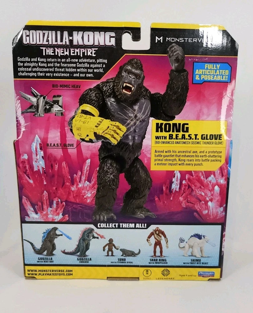 🦍 Godzilla x Kong 6” Kong Figure w/ B.E.A.S.T. Glove – Movie Collectible Return to **Hollow Earth** and join the battle with this **highly detailed 6-inch Kong action figure**, inspired by the blockbuster film Godzilla x Kong ! Designed with intricate movie-accurate detailing and featuring the iconic **B.E.A.S.T. Glove**, this collectible figure from Playmates Toys is a must-have for fans and collectors alike. ✨ Key Features: 🔥 Authentic Design: Detailed sculpting captures the essence of Kong from the new movie 🧤 B.E.A.S.T. Glove Accessory: Includes Kong’s destructive glove for realistic battle poses 🦍 6” Articulated Figure: Multiple points of articulation for action-packed display or play 🎬 Movie-Inspired Packaging: Comes in official Godzilla x Kong box art 🧩 Part of the MonsterVerse: Collect additional figures to expand your own cinematic universe 📦 What’s Included: ✔️ 1x Kong 6” Action Figure ✔️ 1x B.E.A.S.T. Glove Accessory ✔️ Official Movie Packaging ⚠️ Safety Information: WARNING: Choking Hazard – Small parts. Not for children under 3 years old. 🏪 Why Shop With Us? 💬 We're proud to serve collectors and fans with a track record of positive eBay reviews and excellent service. 🛒 Shop with confidence knowing your item is backed by professional handling and support. 🔁 Return Policy ✔️ 30-Day Returns: Not satisfied? Return the item within 30 days in its original condition—no questions asked. 📩 Contact us anytime for help with your order—we’re happy to assist! Godzilla x Kong: 6” Kong Figure with B.E.A.S.T. Glove Accessory Action Figure set by Playmates Toys Product details Return to Hollow Earth with Godzilla and Kong in an all-new adventure! When a colossal threat is discovered within our world, Godzilla and Kong must fight to protect their existence—and our own. The Godzilla x Kong 6” Kong brings the King of Skull Island to your collection, with epic details that capture his new movie look. Set includes Kong’s B.E.A.S.T. Glove and comes in a unique Godzilla X Kong package! The Godzilla x Kong 6” Kong figure is highly detailed with intricate designs to capture the essence of the King of Skull Island. From his destructive B.E.A.S.T. Glove to imposing figure, every detail is made to match the new movie, ensuring an authentic representation of his iconic character. Bring the action home with Kong’s destructive B.E.A.S.T. Glove. The B.E.A.S.T. Glove is highly detailed to match his movie design, adding a realistic element to your playtime or display. Standing 6” tall, the Kong figure is ready to reign over any display or play setting. With multiple points of articulation, Kong is ready for action, so you can recreate your favorite scenes from his epic battles. Complete your monstrous collection with other figures and accessories from the new Godzilla x Kong line. Choose from a wide range of characters, including old allies, dangerous foes, and new challengers to recreate epic battles and awesome new adventures! Build your very own MonsterVerse with Playmates Toys Godzilla vs. Kong Collectible Unisex 4 Years & Up, Multicolor AUTHENTIC: The Godzilla x Kong 6” Kong figure is highly detailed with intricate designs to capture the essence of the King of Skull Island. From his destructive B.E.A.S.T. Glove to imposing figure, every detail is made to match the new movie, ensuring an authentic representation of his iconic character GLOVE ACCESSORY: Bring the action home with Kong’s destructive B.E.A.S.T. Glove. The B.E.A.S.T. Glove is highly detailed to match his movie design, adding a realistic element to your playtime or display BATTLE POSES: Standing 6” tall, the Kong figure is ready to reign over any display or play setting. With multiple points of articulation, Kong is ready for action, so you can recreate your favorite scenes from his epic battles COLLECT THEM ALL: Complete your monstrous collection with other figures and accessories from the new Godzilla x Kong line. Choose from a wide range of characters, including old allies, dangerous foes, and new challengers to recreate epic battles and awesome new adventures! Build your very own MonsterVerse with Playmates Toys
