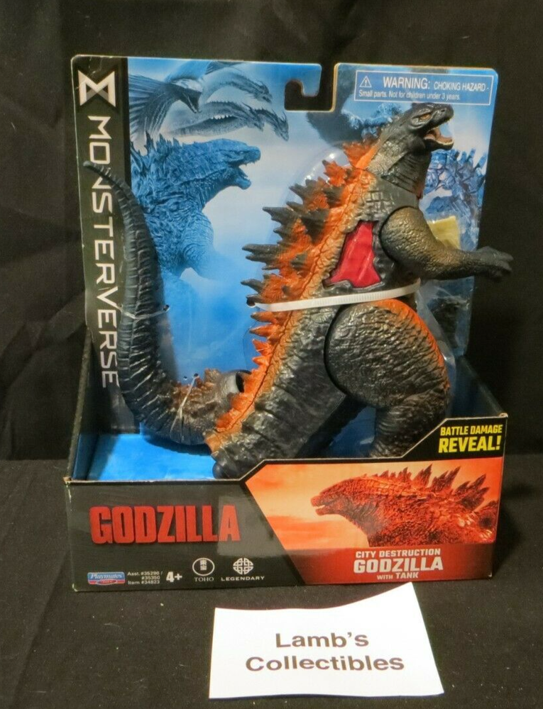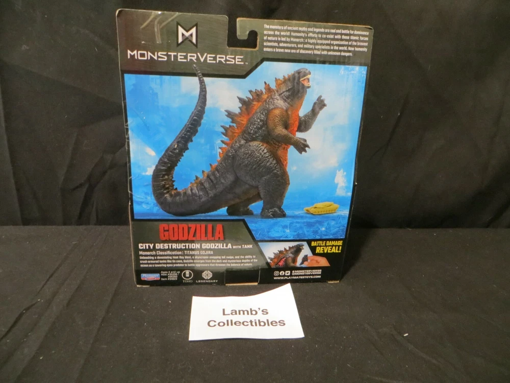 Monsterverse City Destruction Godzilla Battle Damage Reveal & Tank Playmates Toy the cardboard back is slightly curved & plastic clam shell behind Godzilla is loose Please review all photos, policies & contact us with any questions. Thank You! Lamb’s Collectibles I nternational Buyers Import duties, taxes, & charges are not included in item price or shipping cost & are buyer's responsibility. Customers report packages arrive safely & quickly.
