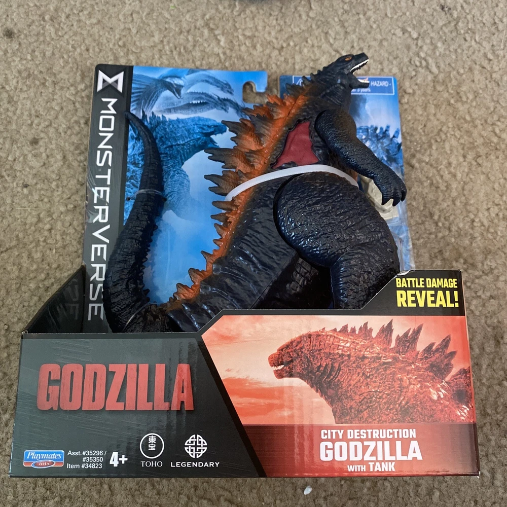 Monsterverse City Destruction Godzilla w/Tank & Battle Damage Reveal Playmates....