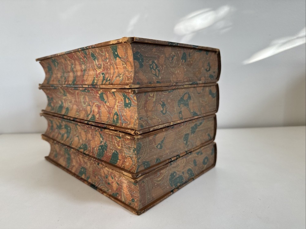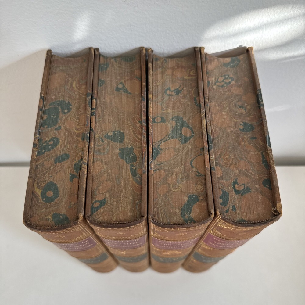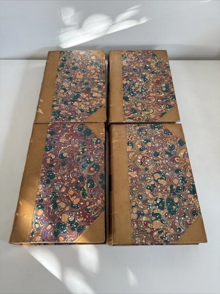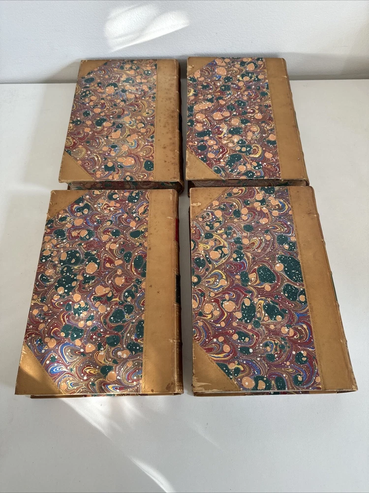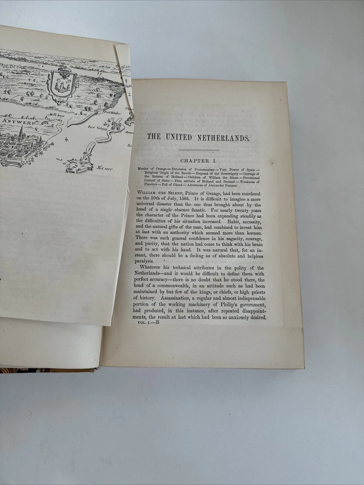 History of the United Netherlands - From the Death of William the Silent to the Twelve Years’ Truce - 1609. By John Lothrop Motley Complete, four volume set. Published in 1872/73 in New York by Harper & Brothers. Beautiful leatherbound books featuring marble patterns to both the outer cover and page edges. Condition: Quite good overall. Some minor age and shelf wear. A few minor cosmetic marks to the leather. Bindings remain very crisp. Some light age coloring to pages. Note written inside on blank cover pages of each volume. Note written by J. Townsend Lansing. Shipped for FREE!