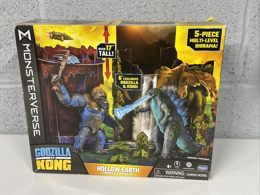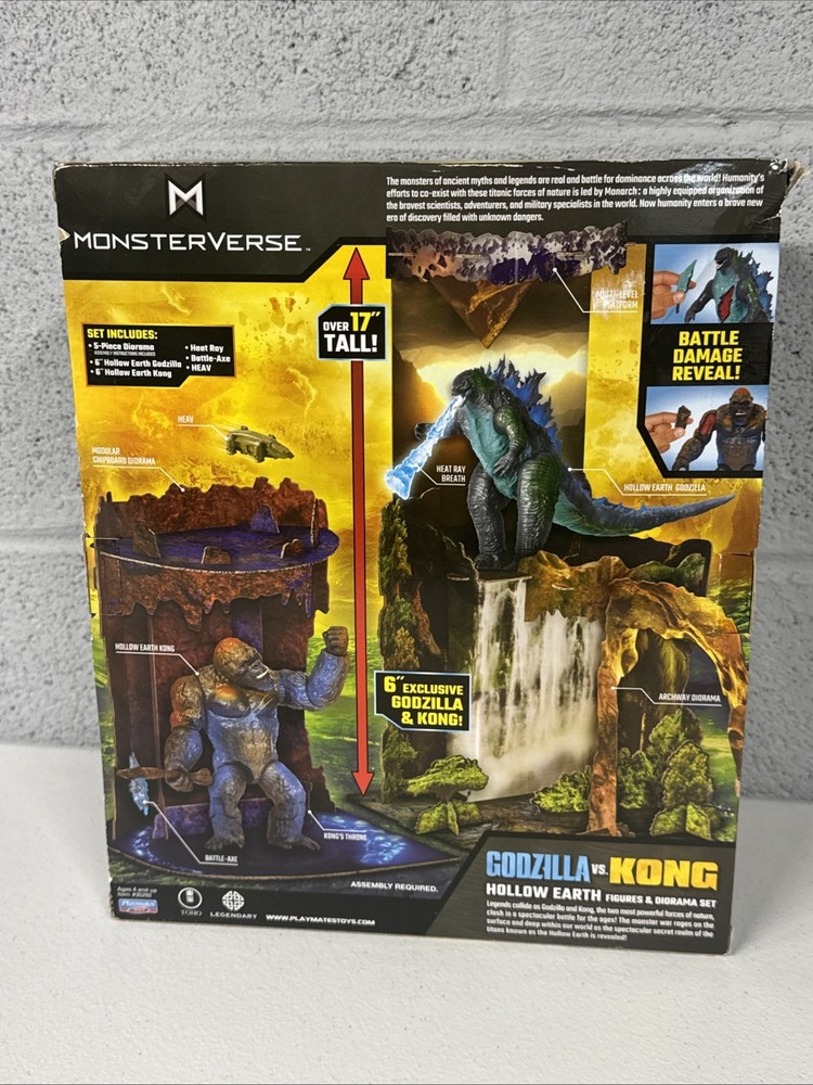 The NEW Monsterverse Hollow Earth Battle Godzilla vs Kong 6” Figures & Diorama Set is a highly detailed collectible set inspired by the iconic Godzilla vs. Kong movie. This set includes 6” City Battle Kong and City Battle Godzilla figures, along with a 3-piece diorama and various accessories like a battle axe, heat ray, and fighter jet. Made of plastic and in a 1:12 scale, these figures capture the essence of the beloved franchises. With features like battle damage reveal, this set is perfect for fans of the Godzilla vs. Kong series and collectors of action figures and accessories.