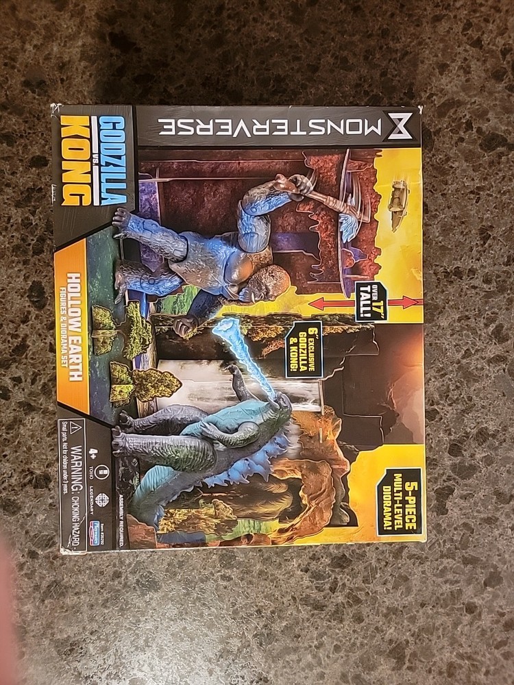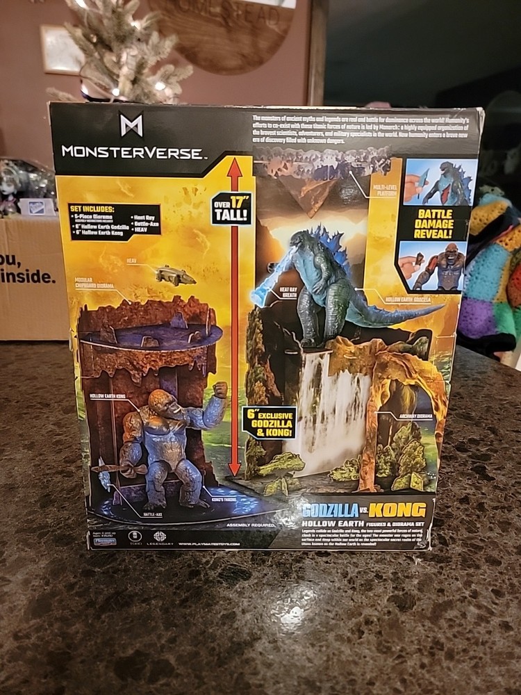 The NEW Monsterverse Hollow Earth Battle Godzilla vs Kong 6” Figures & Diorama Set is a highly detailed action figure set featuring City Battle Kong and City Battle Godzilla from the Godzilla vs. Kong movie franchise. This set includes various accessories such as Battle Axe, Heat Ray, and a Fighter Jet, as well as a 3-piece Diorama for interactive play. Made of plastic and standing at 6 inches tall, these figures are part of the Monsterverse series by Playmates Toys, with features that reveal battle damage for added realism. Perfect for fans of the Godzilla vs. Kong series, this set offers an immersive and exciting play experience.