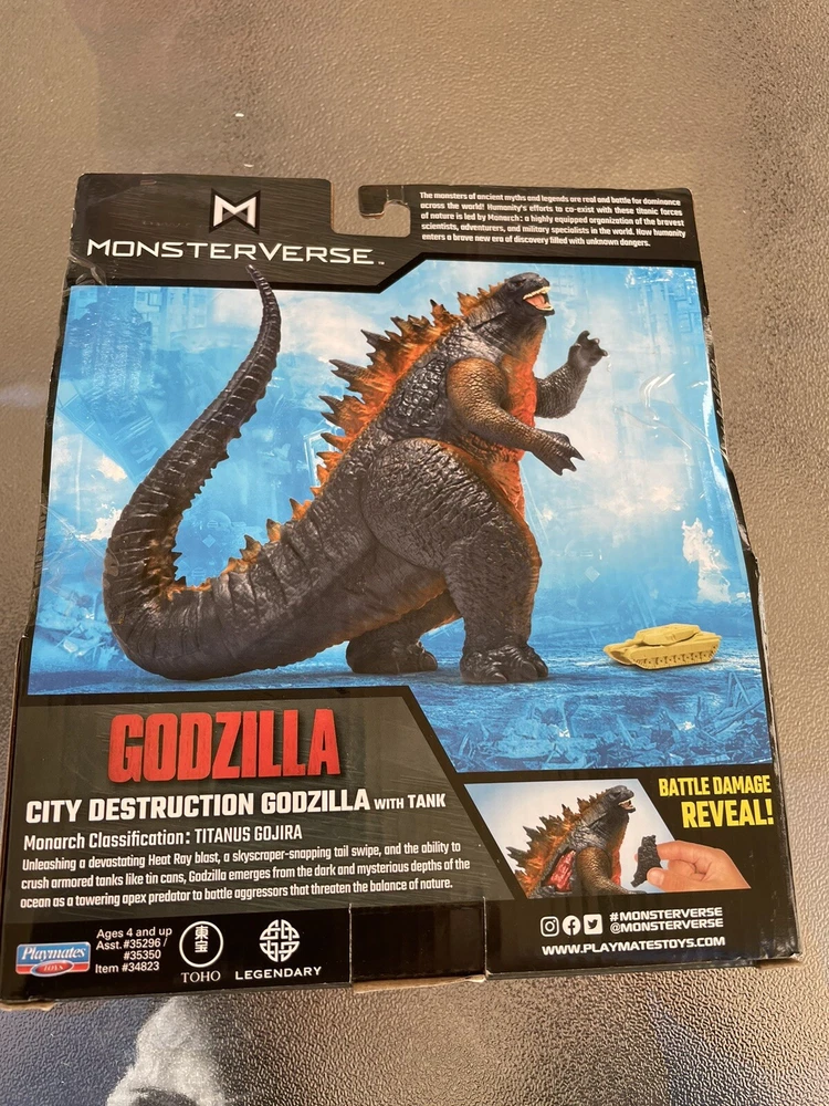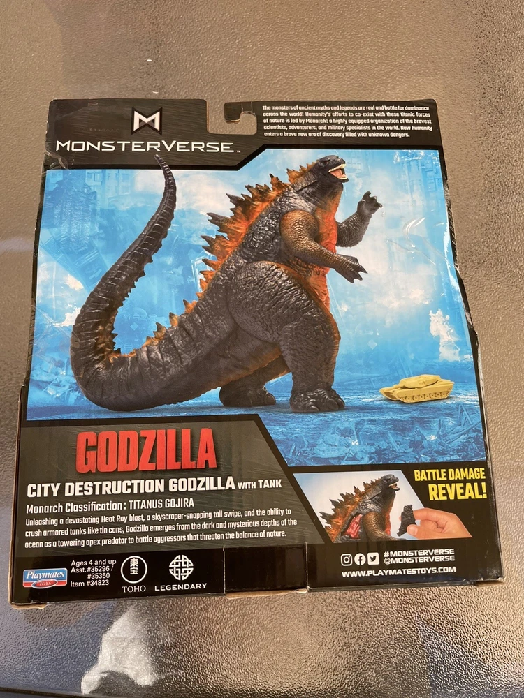 NIP Playmates Toys Godzilla vs Kong Battle City Destruction Godzilla W/Tank 2022.