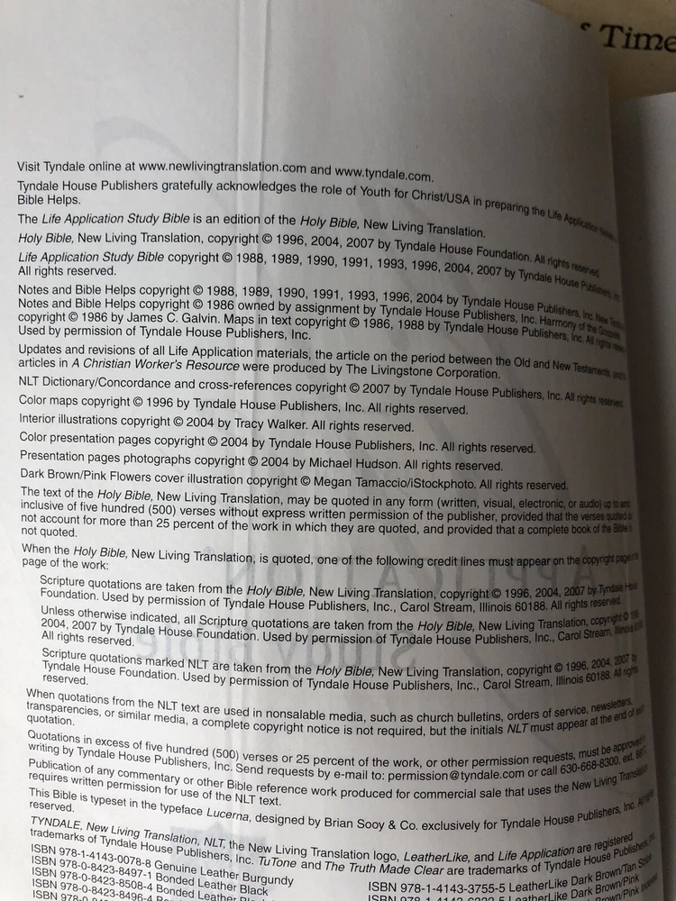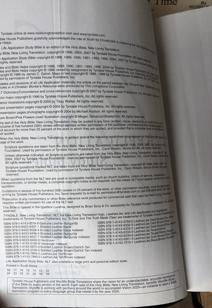 NLT Life Application Study Bible Black Leather Maps Index Charts Concordance Dive into your journey of faith with the NLT Life Application Study Bible, a comprehensive resource designed to deepen your understanding of the Scriptures. *Condition issues noted at the end. This study Bible, published in 2007 by Tyndale House Publishers, comes in a sleek, flexible bonded black leather format, making it both durable and easy to use. Its pages are filled with valuable features including a 365-day reading plan, maps, charts, and a concordance to guide your study. With over 2416 pages, this book weighs about 3#, 10 oz without packing materials. Measures about 9.5" x 6.75" x 1.75". Whether you're looking to explore the parables of Jesus, the harmony of the gospels, or the miracles that shaped history, this study Bible is equipped to enrich your spiritual reading and reflection. **NOTE: expect general wear, marks, etc. from years of use and storage, highlighting by former owner noted thourghout, buying as is, as pictured, issues noted