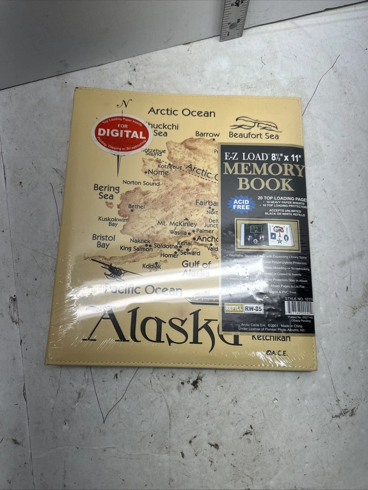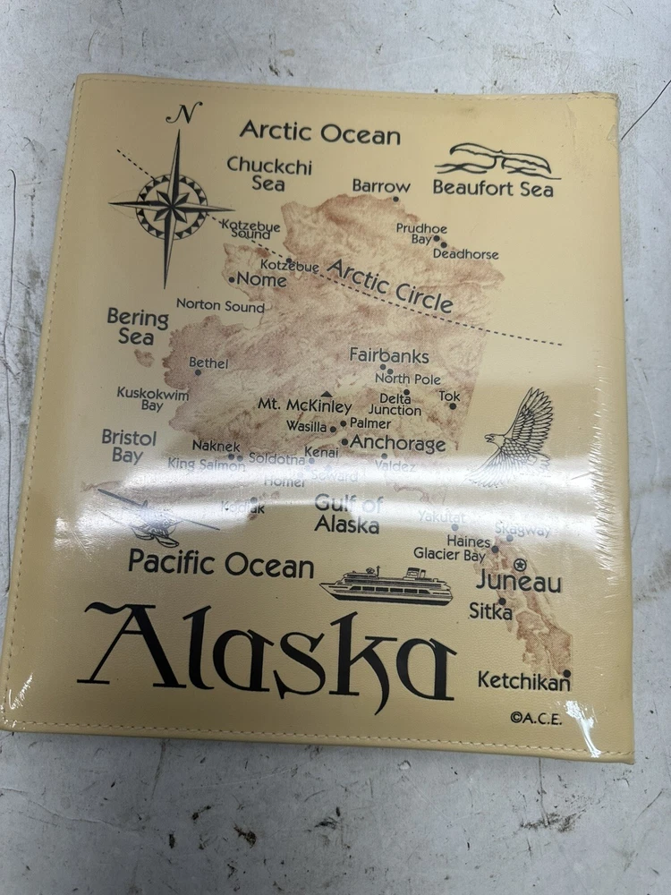 NOS NEW ALASKA Map Easy Load Acid Free Photo Book Beige 8.5" x 11" Detailed #S3