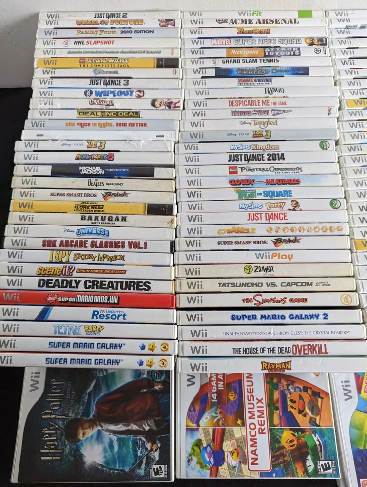 **PLEASE NOTE "(NM)" = NO MANUAL---IT HAS NOTHING TO DO WITH CONDITION--IF YOU WOULD LIKE MORE PHOTOS OF THE ITEMS, PLEASE REQUEST THEM PRIOR TO SHIPPING!** **PLEASE NOTE THAT IF YOU SEE #1, #2, ETC, THAT MEANS THERE ARE MULTIPLE COPIES OF THE SAME GAME, NOT INDICATING A SEQUEL, ETC.) PLEASE SEE PHOTOS WHICH SHOW EXACTLY WHAT YOU ARE GETTING WITH A TITLE IS SELECTED IN THE DROP DOWN** Wii Nintendo Wii Video Games (MAKE YOUR OWN BUNDLE)(PICK YOUR GAMES) ALL ORIGINAL--NO REPRODUCTION OR RE-PRINTED LABELS OR CARTRIDGES, ALL BOARDS HAVE BEEN VERIFIED AND CHECKED!! **PHOTOS SHOWN ARE EXACTLY WHAT YOU WILL RECEIVE--INDIVIDUAL PHOTOS HAVE BEEN TAKEN--IF YOU'D LIKE TO SEE MORE PHOTOS PLEASE SPECIFY THE TITLE AND BE SURE TO INCLUDE THE # IF THERE ARE MULTIPLE LISTED** **WE WILL COMBINE SHIPPING!!** GENUINE NINTENDO PRODUCTS UNLESS OTHERWISE STATED! WE WILL SHIP WITHIN 24 HOURS OF THE ORDER BEING PLACED! TRACKING WILL ALWAYS BE UPLOADED! $0 SHIPPING FOR ALL ORDERS OVER $250 FOR U.S.A. CUSTOMERS! CONTACT US WITH ANY QUESTIONS!