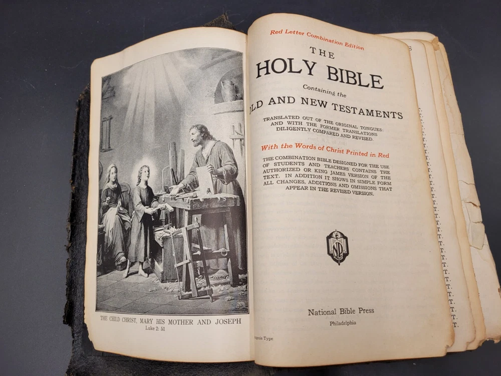 National Bible Press Sunday School Teacher Red Letter Maps Leather Gold 1926. This pre-owned item is in fair condition. It is very old, very used. The leather is brittle with some softness. Torn in areas. Some pages have come loose. The colors and drawings are still bright. The family didn't want it anymore. Item sold AS IS. Please see pictures for reference. Thank you for visiting my store! If you have any questions regarding this item, please feel free to contact me.