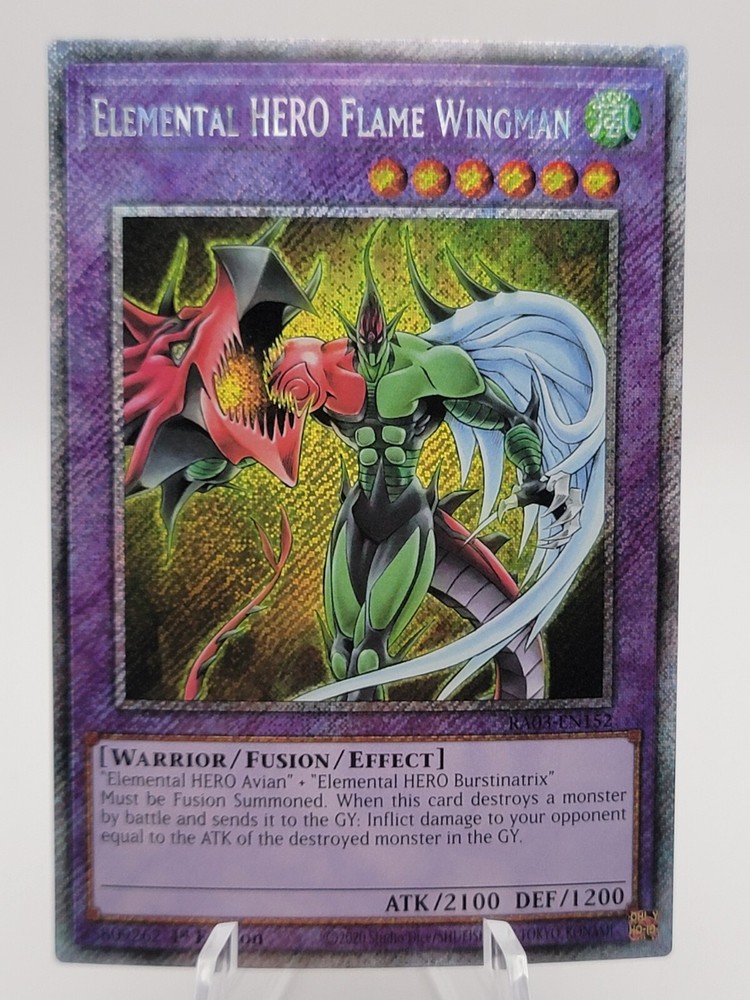 Listing Information Quantity You Will Receive: 1 Product Name: Elemental HERO Flame Wingman - RA03-EN152 - Platinum Secret Rare - 1st Edition Product Set: RA03 Quarter Century Bonanza Product Condition: Near Mint Important Item Picture Information Listing photos are stock photos unless clearly indicated otherwise! They are for identification purposes and are not pictures of the actual card(s) you will receive! In case of minor discrepancies between the stock photo and listing title (e.g., "1st edition" vs. "Unlimited"), the listing title takes precedence. We will provide scans for products priced at $100 and above. For cards priced under $100 please refer to the condition guide below to set proper expectations. Condition Guide We condition cards using TCGplayer's condition guide. Below are TCGplayer's descriptions for each condition. Scan the QR code below to view TCGplayer's full Card Conditioning Standards. Near Mint : "Cards in Near Mint (NM) condition show minimal wear from shuffling, play or handling and can have a nearly unmarked surface, crisp corners and unblemished edges outside of a few slight flaws. A Near Mint card may have slight edge wear or a scratch or three, but overall look nearly unplayed with no major defects." Light Play : "Cards in Lightly Played (LP) condition may have minor border or corner wear, scuffs or scratches. There are no major defects such as grime, bends or issues with the structural integrity of the card. Noticeable imperfections are okay, but none should be too severe or at too high a volume." Moderate Play : "Cards in Moderately Played (MP) condition can have border wear, corner wear, scratching or scuffing, creases or whitening or any combination of moderate examples of these flaws." Heavy Play : "Cards in Heavily Played (HP) condition show a major amount of wear. Cards can show a variety of moderate imperfections along with creasing, whitening and bends. Heavily Played cards can also have flaws that impact the integrity of the card, but the card can still be sleeve playable." DAMAGED : "Damaged cards show wear or imperfections beyond the standards for other conditions. Cards in Damaged condition can also exhibit an imperfection that may make the card illegal for tournament play, even in a sleeve. Cards in Damaged condition may have major border wear, corner wear, scratching or scuffing, as well as folds, creases, tears or other damage that impacts the structural integrity of the card." Shipping Policies Domestic orders eligible for eBay Standard Envelope service will be shipped in a plain white envelope. Domestic orders ineligible for eBay Standard Envelope service will be shipped in a padded mailer using USPS Ground Advantage service. International orders will be shipped using eBay International Shipping service. We do not offer any other international shipping services at this time. eBay determines the cost for this service. No discounts are available. Import duties, taxes, and charges aren't included in the item price or postage cost. These charges are the buyer's responsibility. Please check with your country's customs office to determine what these additional costs will be prior to buying. Next time you're in the Philadelphia area, visit our stores located in Holmes, PA, East Norriton, PA, and Wilmington, DE!