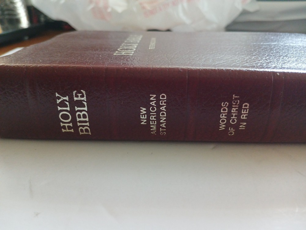This Bible is in good shape The name page has been removed (Please see photos for condition) The product is a vintage 1977 edition of the New American Standard Bible in Nelson Bonded Leather. This red letter edition features color maps, a leather cover, and gilt pages, making it a visually appealing and durable option for young adults, ages 9-12, and adults. Published by Thomas Nelson, this Bible is a classic piece with a timeless message, perfect for those seeking spirituality and religious guidance. The Bible is written in English and includes 1355 pages, providing readers with a comprehensive collection of religious texts. Free US ground shipping You may buy priority mail I ship weekdays, if your payment is in by noon est your package will mail the same day (unless the fish are bittin)
