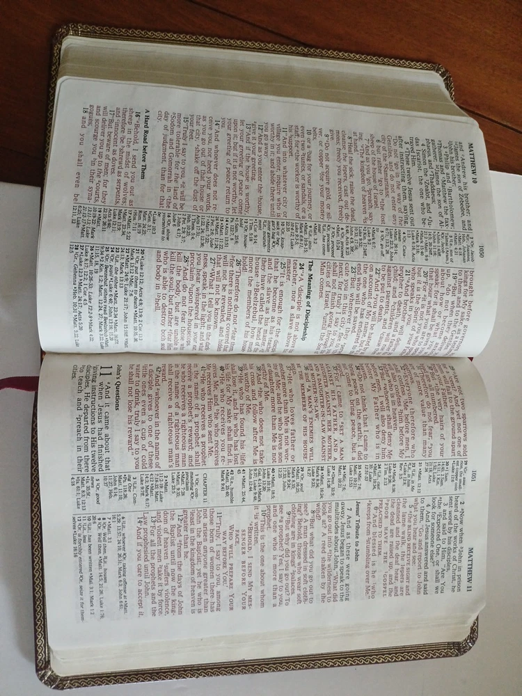 This vintage 1977 NASB is a beautiful, durable Bible with a bonded leather cover, gilt edges, and color maps. The red-letter text makes key verses stand out, and despite the removed name page, it remains in great condition. Perfect for study or reflection, it’s a timeless choice for anyone seeking a classic, well-crafted Bible. A wonderful addition to any collection!